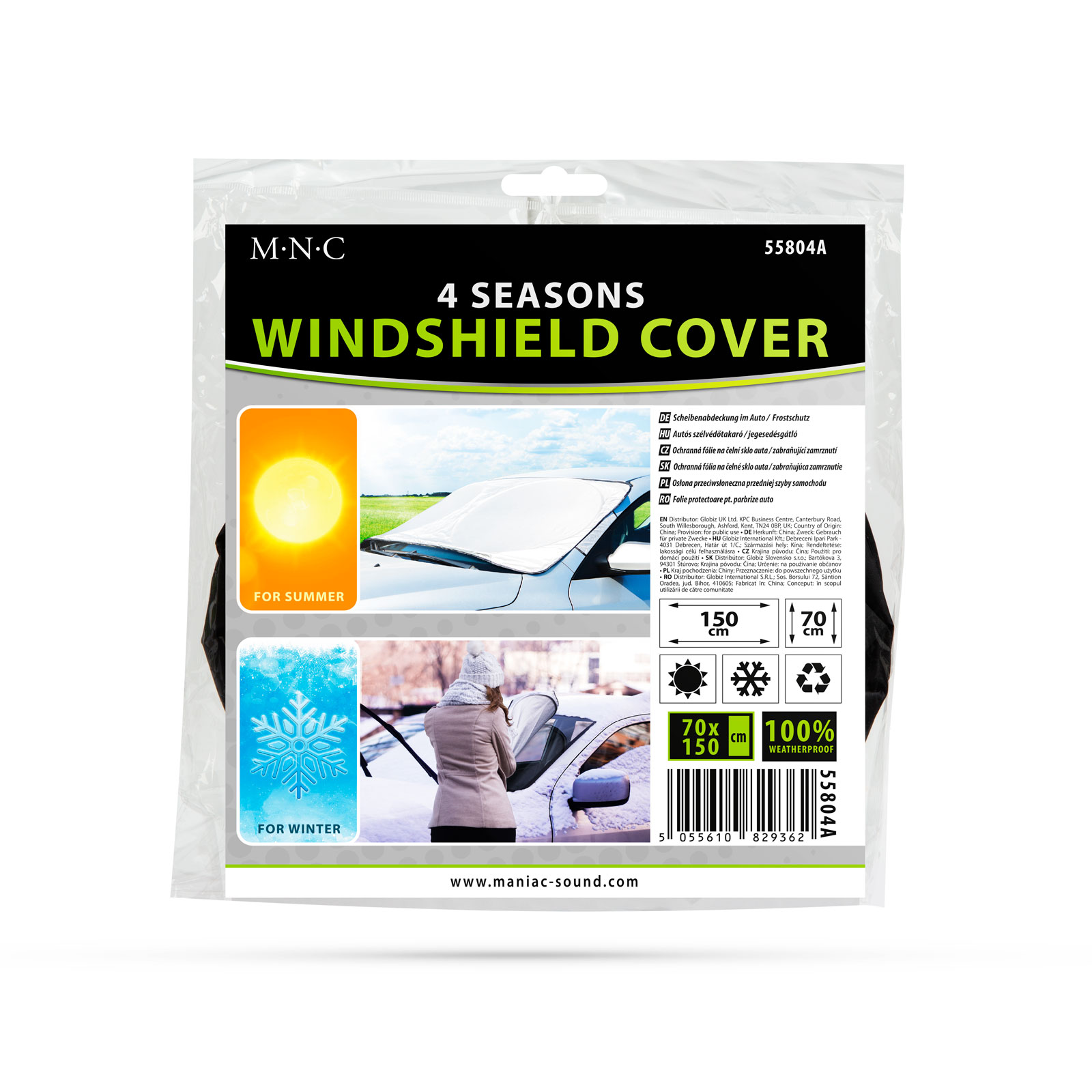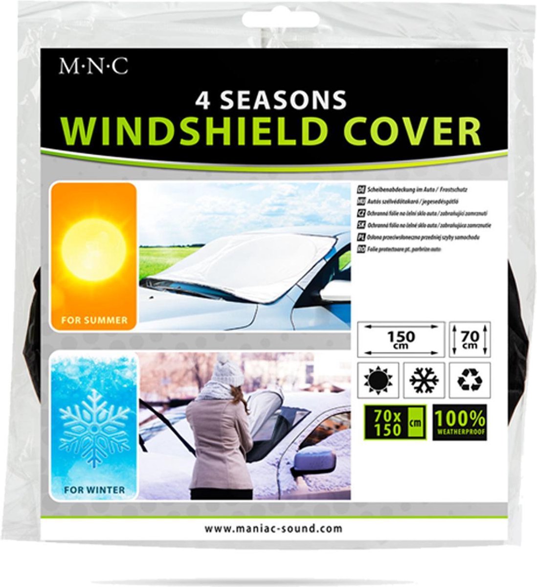 Praktische winter-zomer accessoire voor uw auto. Dankzij deze windschermafdekking voorkom je dat de voorruit bevriest en verwijder je eenvoudig de sneeuwlaag van de voorruit. Dankzij het verlengde ontwerp kan hij gemakkelijk aan de deuren worden bevestigd. Het verstevigde cirkelvormige inzetstuk zorgt voor een goede grip bij het verwijderen van de sneeuwlaag. Het kan ook worden gebruikt tegen zomerse hitte, met zuignappen die gemakkelijk in de auto kunnen worden bevestigd.