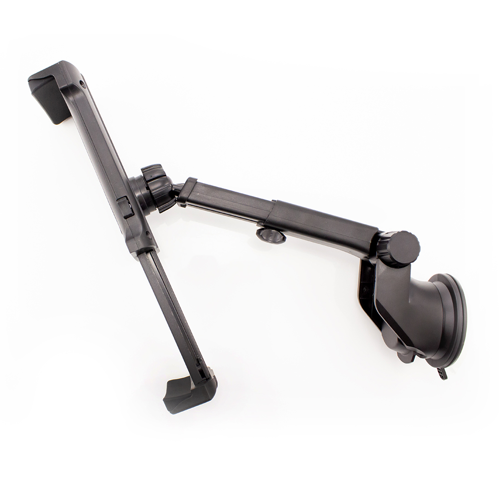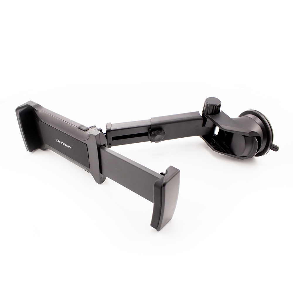 Universele tablet-/telefoonhouder voor in de auto, die dankzij de siliconen vacuümzuignap eenvoudig aan zowel de voorruit als het dashboard te bevestigen is. Hij is voorzien van rubberen steunelementen, die een stabiele bevestiging bieden voor elk apparaat met een breedte van 115-260 mm. Het telescopische klemmechanisme kan worden uitgeschoven tot een breedte van 230 mm en is eenvoudig op meerdere punten verstelbaar en 360° draaibaar.