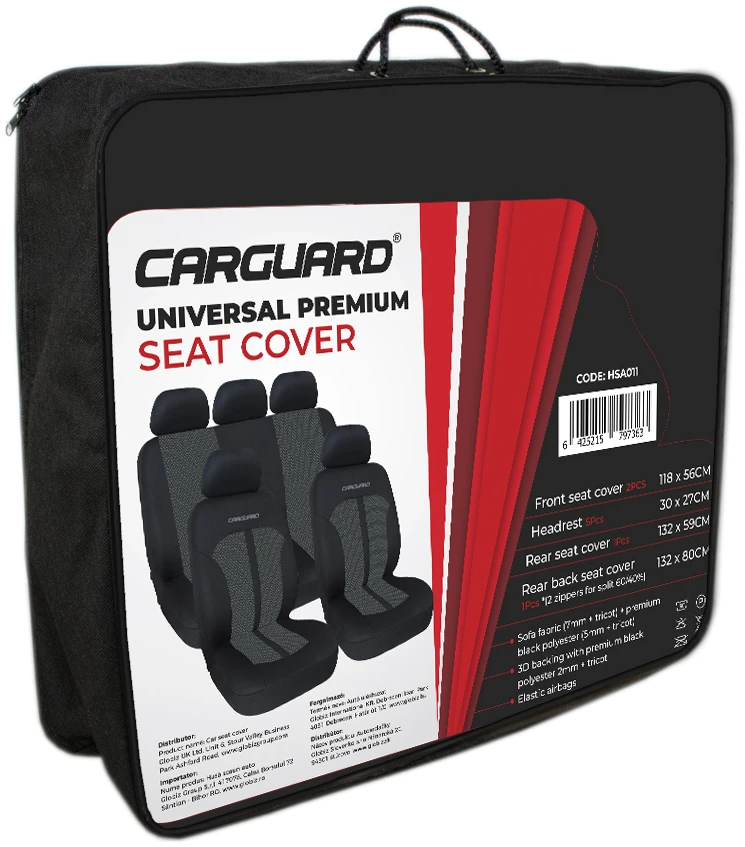 Ontdek de elegantie en hoge kwaliteit van CARGUARD premium universele autostoelhoezen! Welke maat of type autostoel je ook hebt, onze universele hoezen passen perfect en bieden maximale bescherming tegen slijtage, vuil en beschadigingen. Ze zijn gemaakt van hoogwaardige, resistente en gemakkelijk schoon te maken materialen en geven de auto niet alleen een elegante en verfijnde uitstraling, maar bieden ook comfort tijdens reizen. De polyester toplaag en de kwaliteitsmaterialen die gebruikt zijn bij de productie van de hoezen laten lucht stromen en zorgen zo voor extra comfort. Deze set biedt volledige bescherming voor de twee voor- of achterstoelen, inclusief de hoofdsteunen. Dankzij de universele maat en fixeerbaarheid is hij compatibel met veel auto’s. Met behulp van de metalen bevestigingshaken kan hij eenvoudig en snel aan de onderkant van de zitting worden bevestigd. Bescherm jouw autostoeltje en vind in ons assortiment de kleurencombinatie die bij jou past.