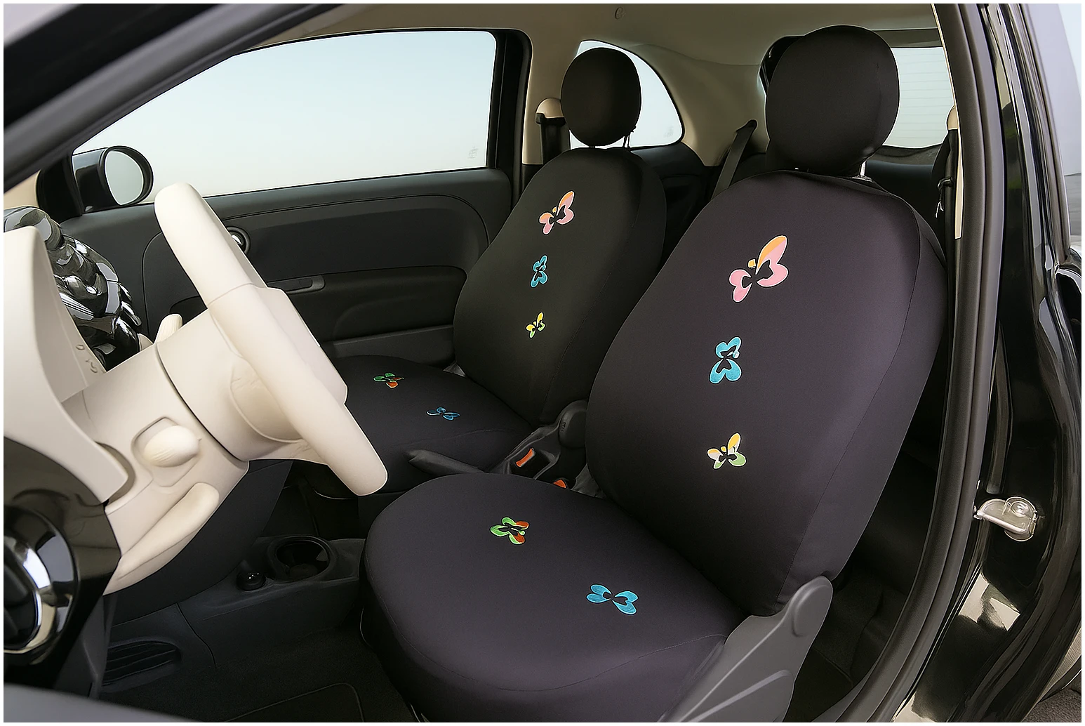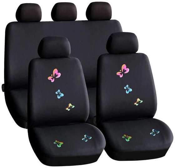 Afbeelding van Universele stoelhoezen auto - Zwart met Vlinders - Stoelhoes voor in de auto - Complete set - Stoelhoezenset