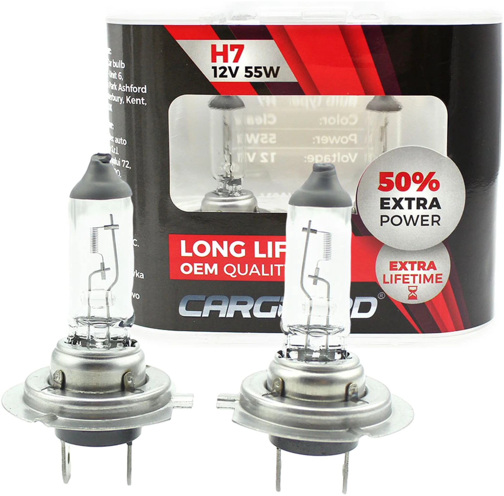 Carguard – Set (2x) H7 Autolampen Halogeen – 55W 12V – Long Lifetime Koplampen – Koplamp 50% extra lichtopbrengst
