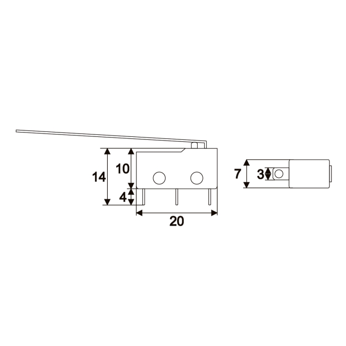 Schakelaartype: SPDT Voeding: 5 A / 250 V AC Schakelaargrootte: 3,2 x 0,5 mm Maximale temperatuur: 85°C Gewicht: 1,6 gram