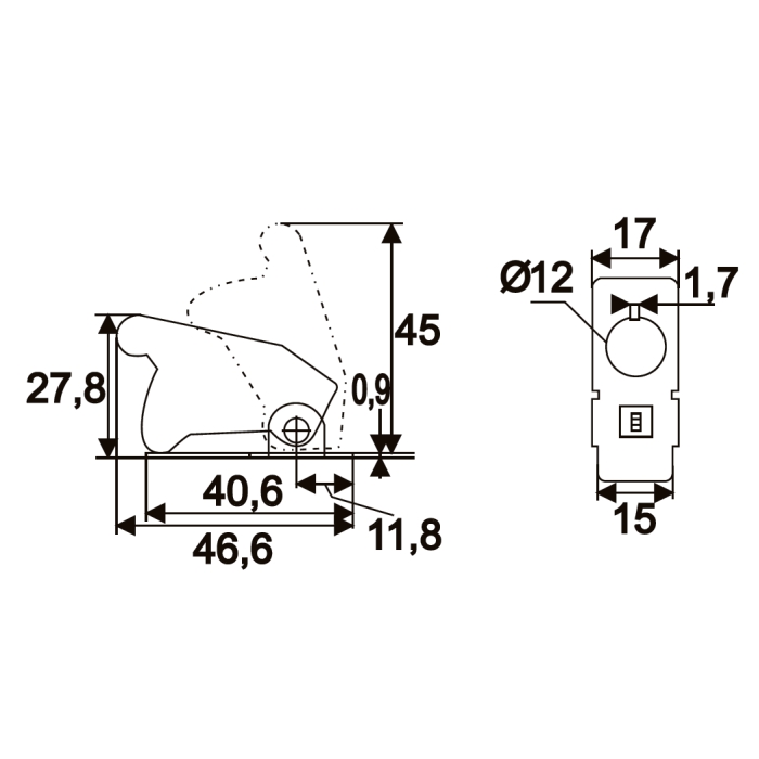 1x Transparante Veiligheid Schakelkap Met Veermechanisme – Schakelaar Beschermkap Tegen Onbedoeld Schakelen – Geschikt Voor Schakelaars 09015 09017 09051 09053 09054 09057 09087 09088 – Montagegat Ø12mm – Verkoopeenheid 1 Stuk [09094]