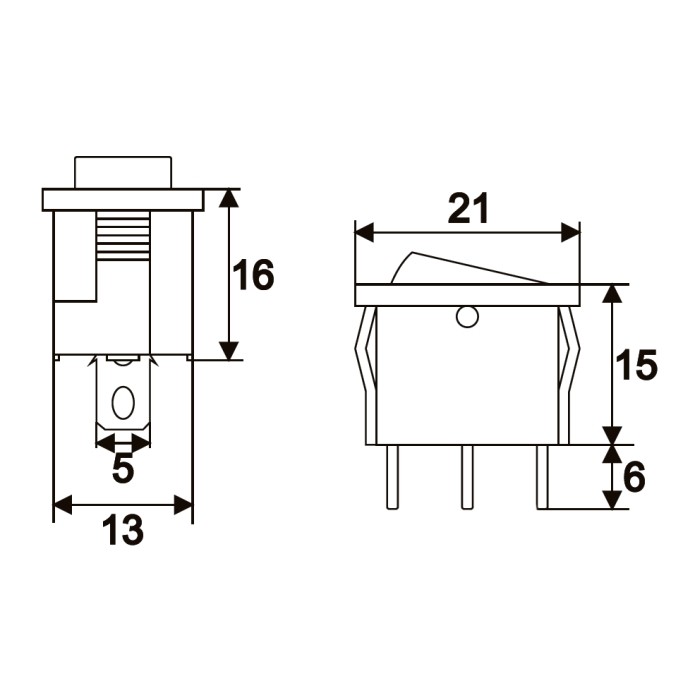 Stroom: 6 A (10 A) – 250 V AC Verbindingen: 4,8 mm Installatiegrootte: 19,5 x 13 mm Maat: 21 x 15 mm Kleur: Zwart met blauwe schakelaar
