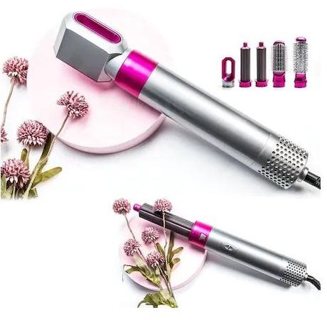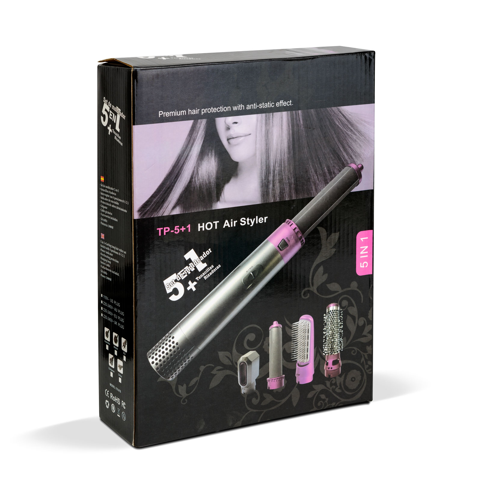 Style je haar met deze 5-in-1 haarstyler! Een uitstekende keuze voor alle haartypes. Met de verschillende accessoires kun je je haar drogen, krullen, stijlen, volume geven en stylen. Met de 3 standen stel je eenvoudig de gewenste temperatuur en luchtstroomsnelheid in. Lichtgewicht en compact, dus je kunt hem overal mee naartoe nemen.