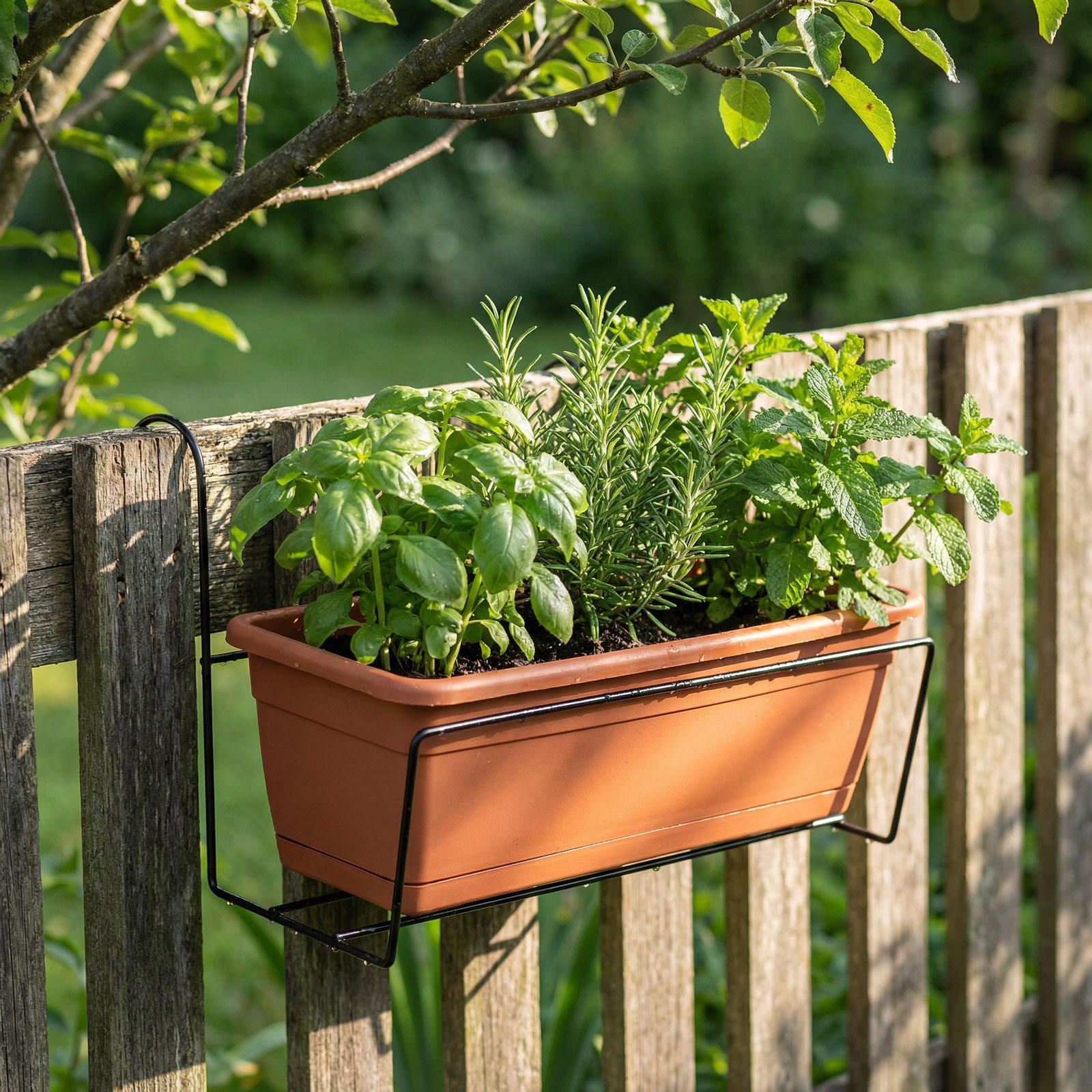 Bloembakhouder – metaal, zwart – voor reling – 40 x 22 cm 1 Stuks [11500C]