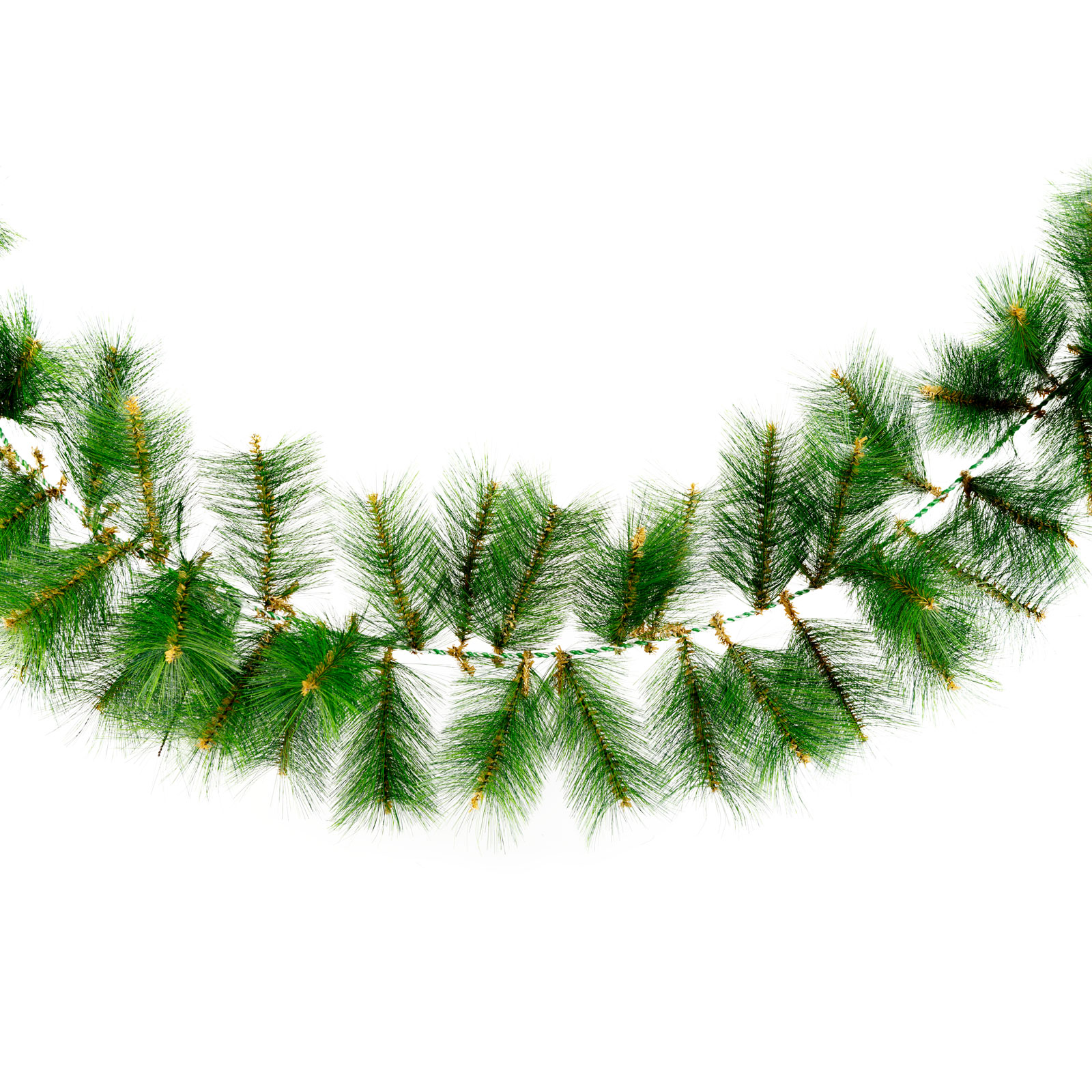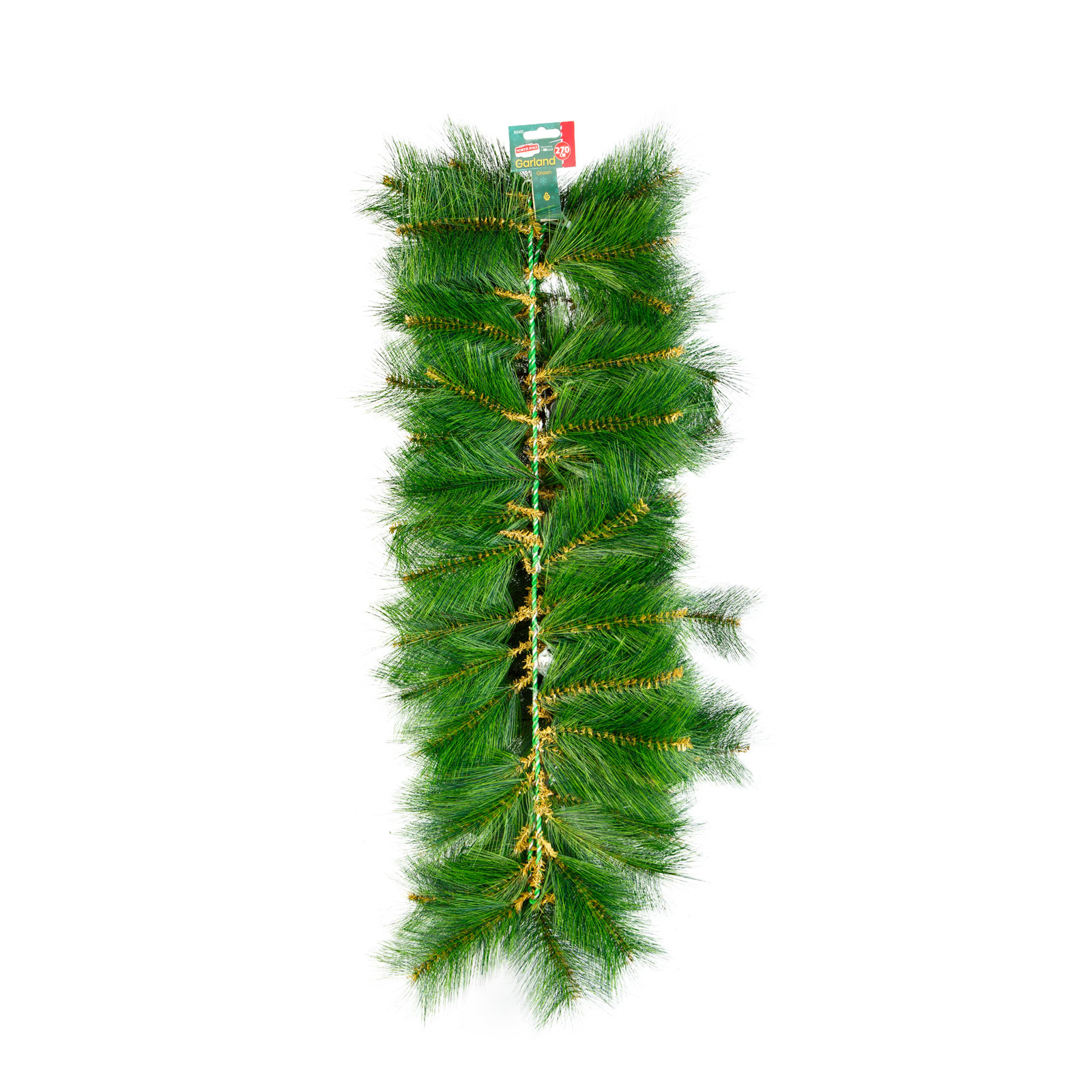 Breng een feestelijke sfeer in huis met deze prachtige, dichte groene dennenkrans! Deze decoratie, die doet denken aan natuurlijke dennentakken, is een perfecte keuze voor het decoreren van deuren, balustrades, schouwen of zelfs vensterbanken.