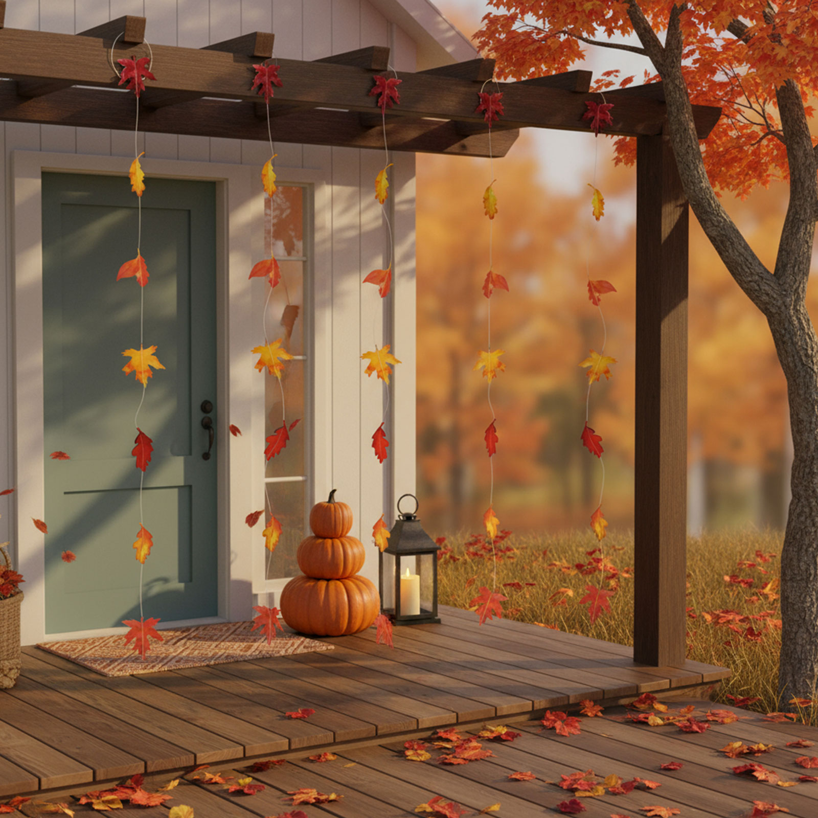 Haal de magische kleuren van de herfst in huis of op je werkplek! Deze prachtige herfstdecoratie is de perfecte keuze als je een gezellige en uitnodigende sfeer wilt creëren. De realistisch gevormde bladeren, geregen aan een dun draadje, roepen de schoonheid van de natuur op en zijn gemakkelijk op te hangen.