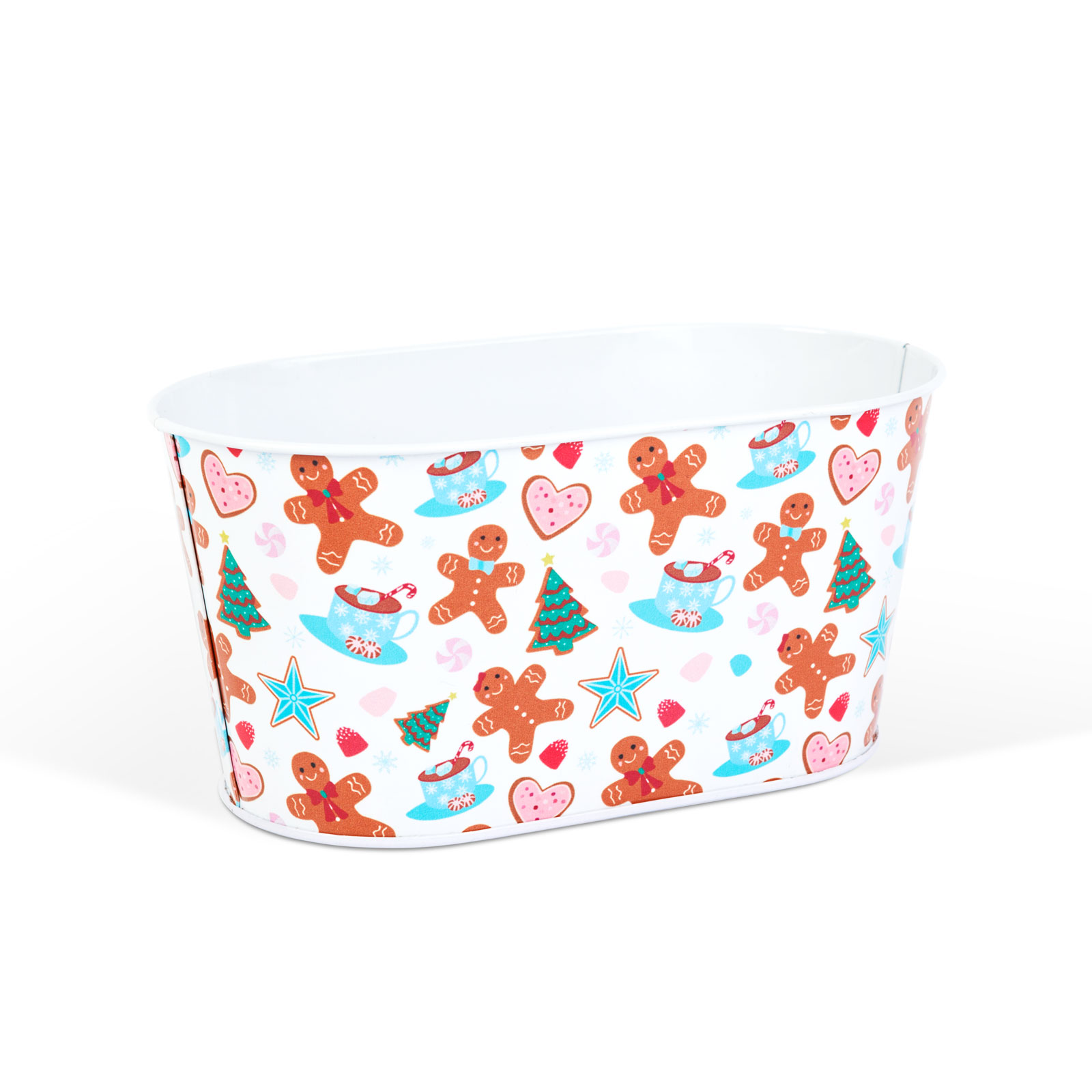 Deze vrolijke metalen kerstmand met zuurstokpatroon is de perfecte keuze voor de feestdagen! Je kunt hem gebruiken om koekjes, kleine cadeautjes, snoep of zelfs decoraties in te bewaren. Het duurzame metaal zorgt voor stevigheid, terwijl het kleurrijke ontwerp een feestelijke sfeer creëert. Staat prachtig op een tafel, plank of dressoir – waar dan ook!