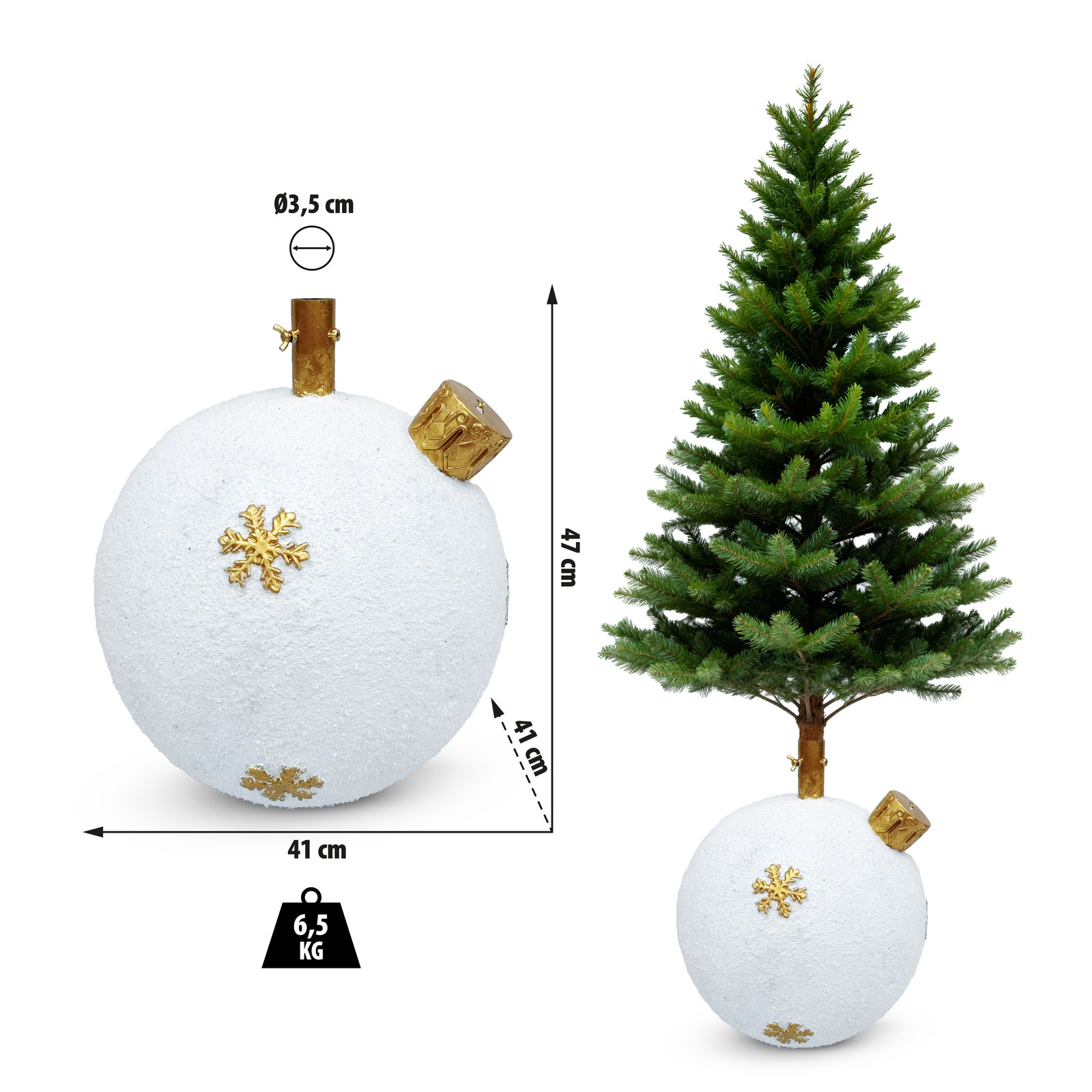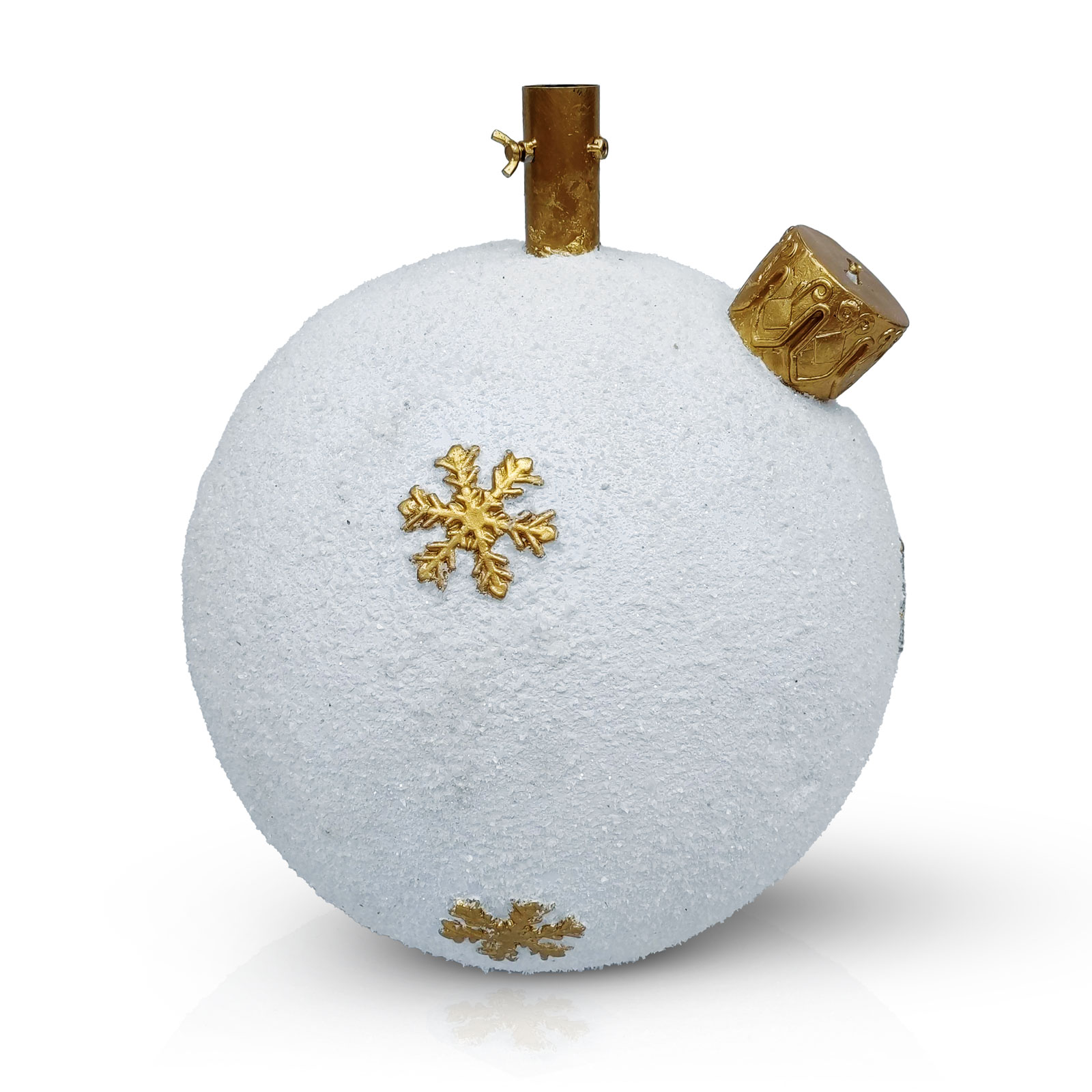 Kerstboomstandaard Kerstbal – Decoratieve Kerstboomvoet van Kunststeen – Stevige Boomstandaard met Gouden Sneeuwvlokken – Wit/Goud 1 Stuks [58593]