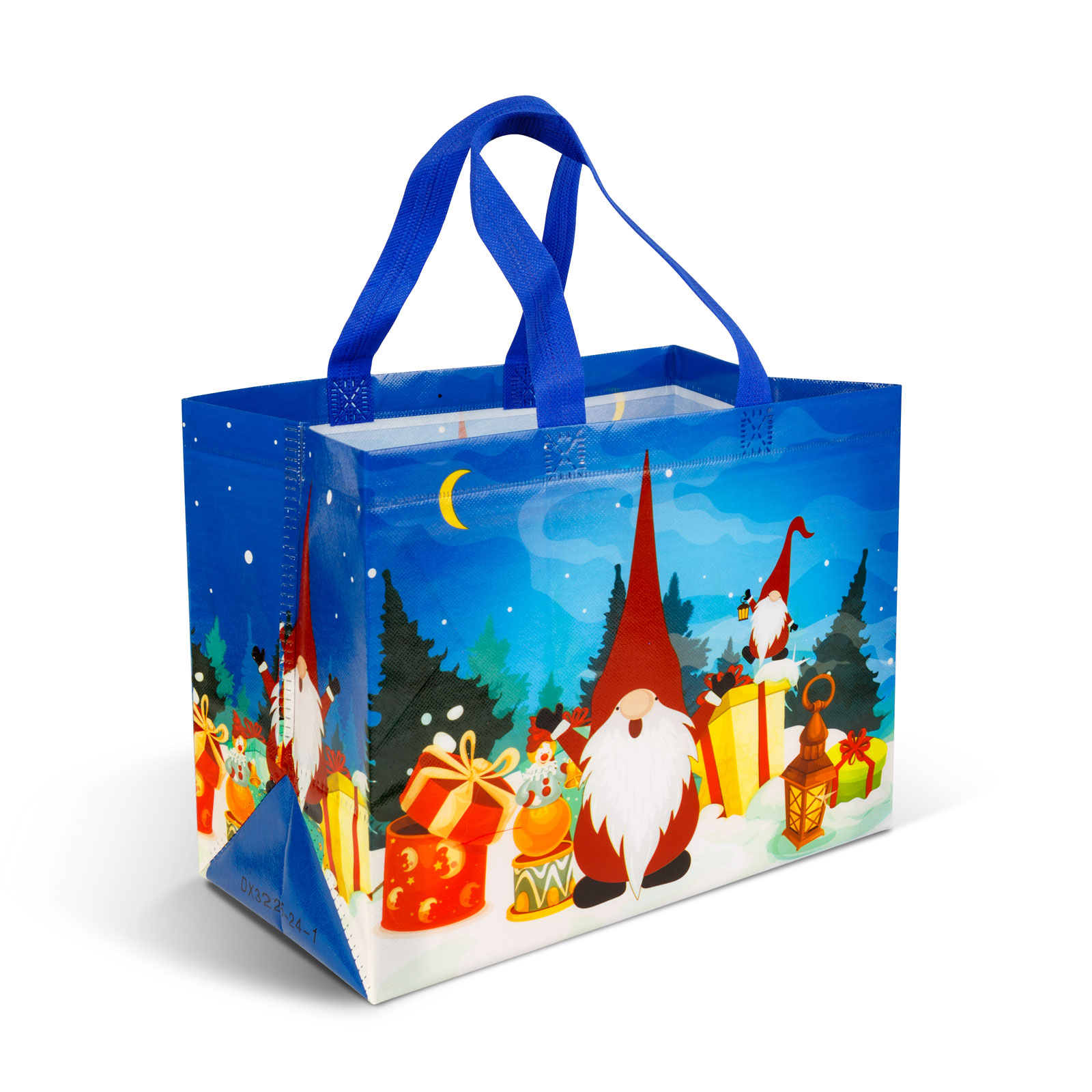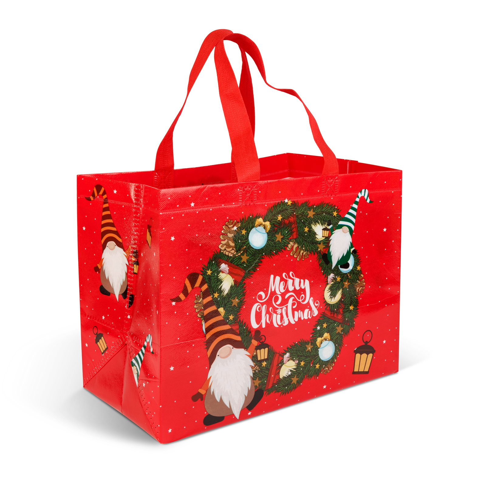 Maat: 31 x 25 x 17 cm Kleur: Rood, blauw, groen Materiaal: Niet-geweven polypropyleen Ontwerpen: Kerstman, kerstster Gewicht: ~40 gram