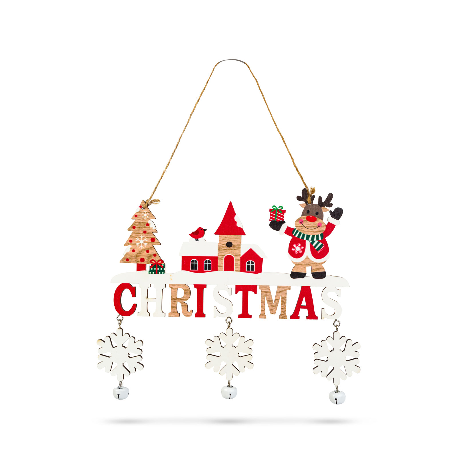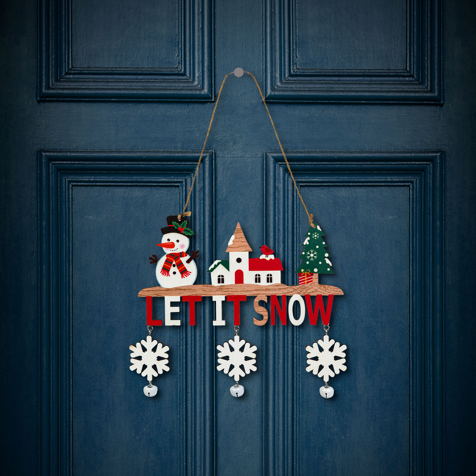 Fleur je huis op met deze charmante hangende houten kerstdecoratie! De decoratie is verkrijgbaar in twee uitvoeringen: met de inscriptie "Christmas" en een rendier of met de inscriptie "Let It Snow" en een wintertafereel met een sneeuwpop. Het natuurlijke houten materiaal geeft de decoratie een warme en rustieke uitstraling, die nog wordt versterkt door de hangende belletjes. Hij is gemakkelijk te bevestigen aan een deur, muur, raam of zelfs aan een kerstboom, waardoor hij een ideale keuze is voor elke kerstversiering.