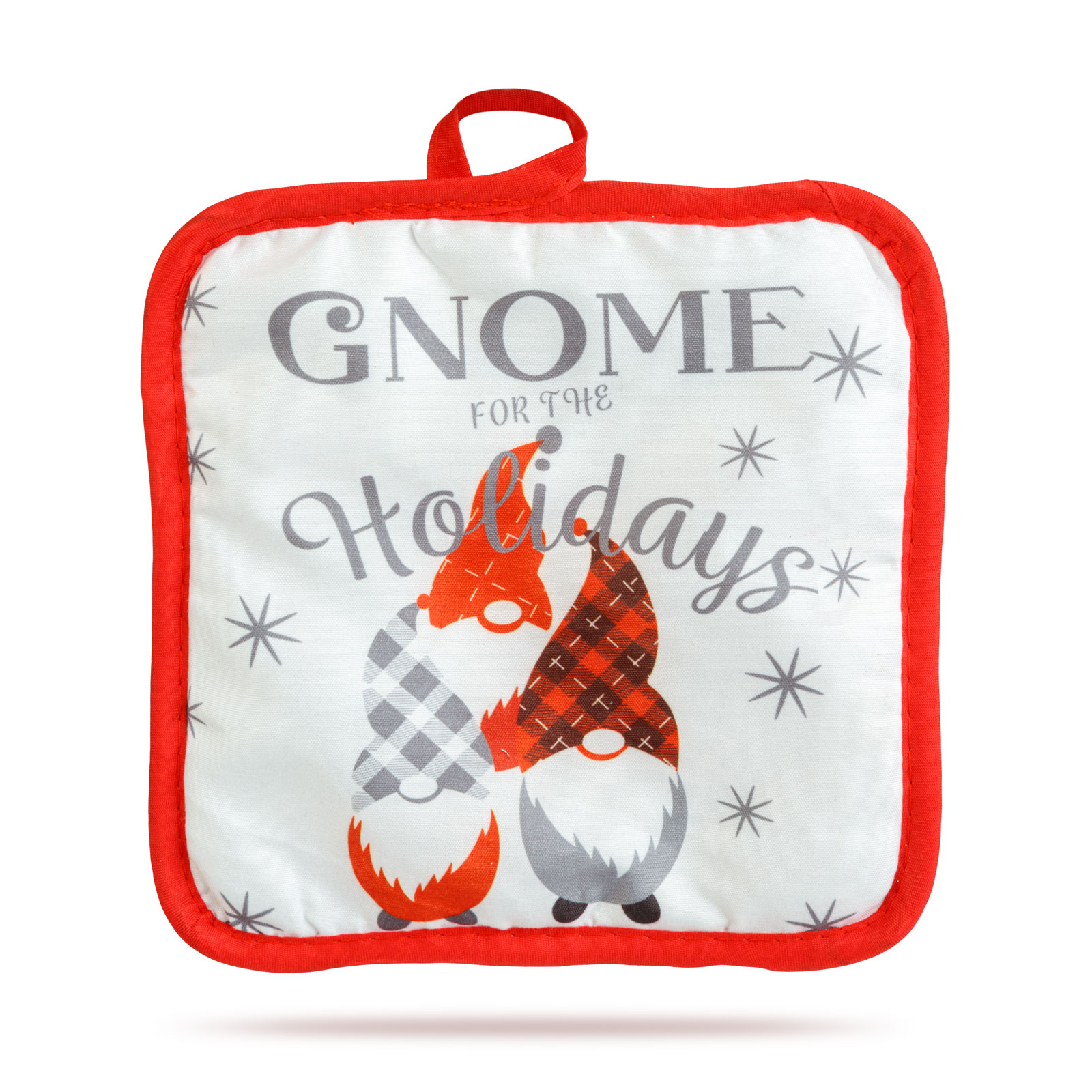 Pannenlap: 16 x 16 cm Materiaal: 100% katoen Patroon: Kabouter Kleur: Wit met rode rand Gewicht: ~68 gram