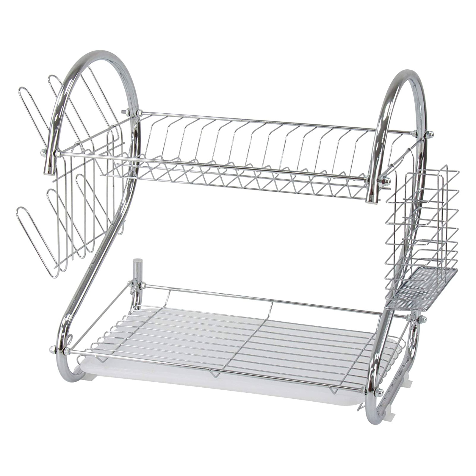 Metalen keuken lekbak waar veel schone borden en glazen in kunnen. Het druppelende water wordt opgevangen door een bakje, zodat het hele aanrecht niet in het water staat. Hij kan met behulp van een paar schroeven worden gemonteerd en gedemonteerd.
