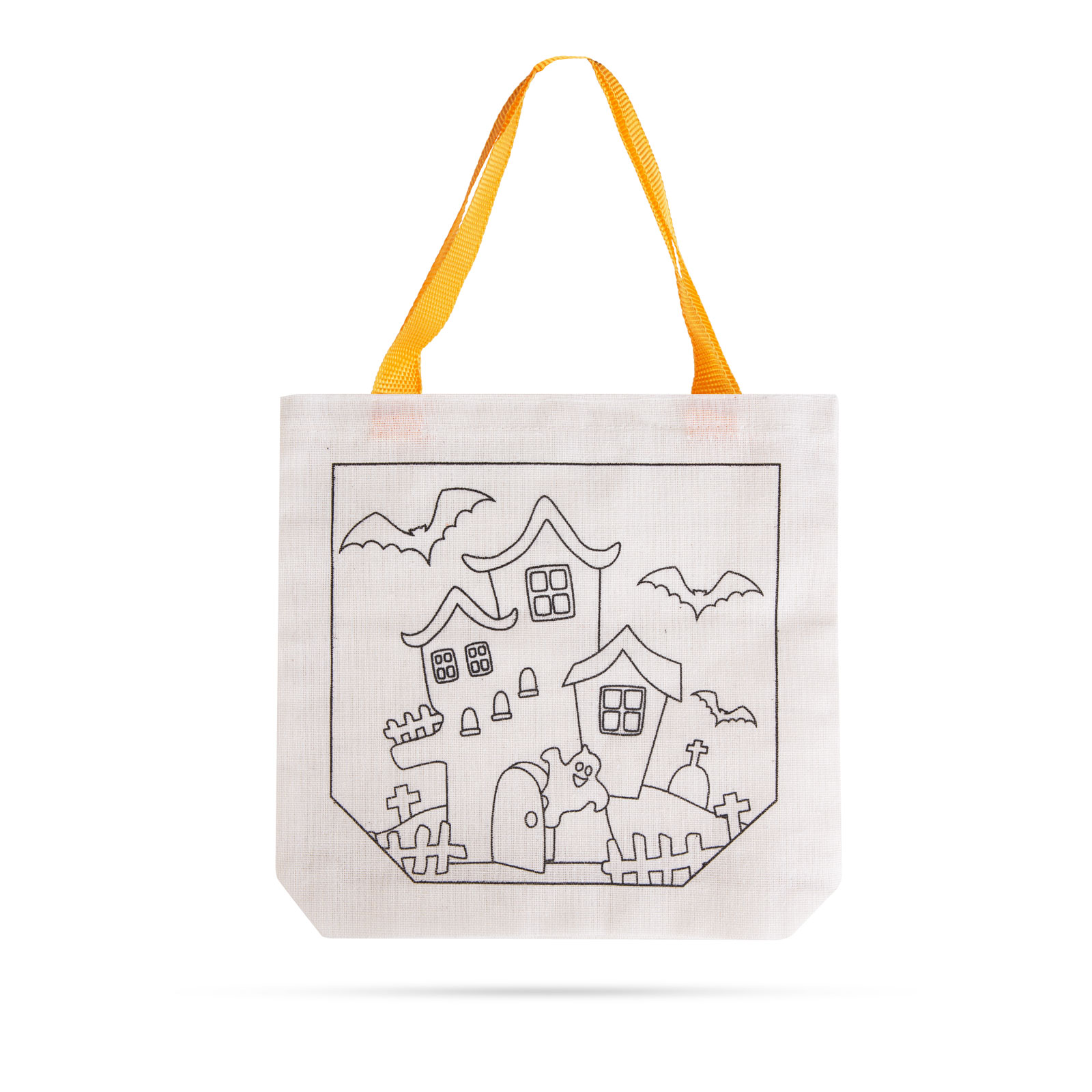 Kleurtas met kleurrijke viltstiften. Twee in één: tas én activiteit voor kinderen. Bij het kleuren moet er dikker papier tussen de twee materialen van de tas worden geplaatst, zodat er geen verf op de achterkant komt.