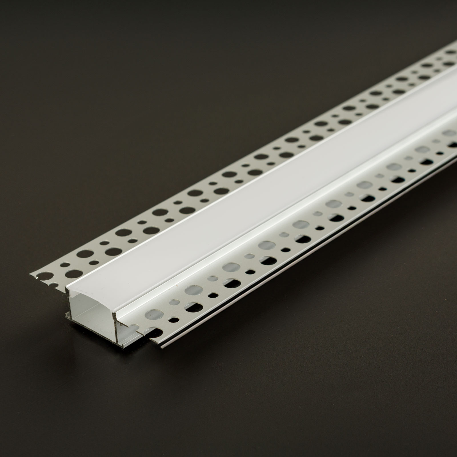 Geef de verlichting in uw huis of bedrijfsruimte een moderne en strakke uitstraling met dit inbouwbare aluminium LED-profiel! Dankzij het hoogwaardige ontwerp kunnen LED-strips elegant in wanden of plafonds worden weggewerkt, waardoor alleen een gladde, decoratieve verlichting overblijft – zonder zichtbare kabels of bevestigingsmaterialen. De geperforeerde zijvleugels maken een eenvoudige bevestiging aan gipsplaat of stucwerk mogelijk, waardoor het profiel na installatie naadloos in het oppervlak opgaat. De opalen diffuser zorgt voor een zacht diffuus licht en vermindert LED-hotspots, wat resulteert in een strakke, uniforme lichtlijn.