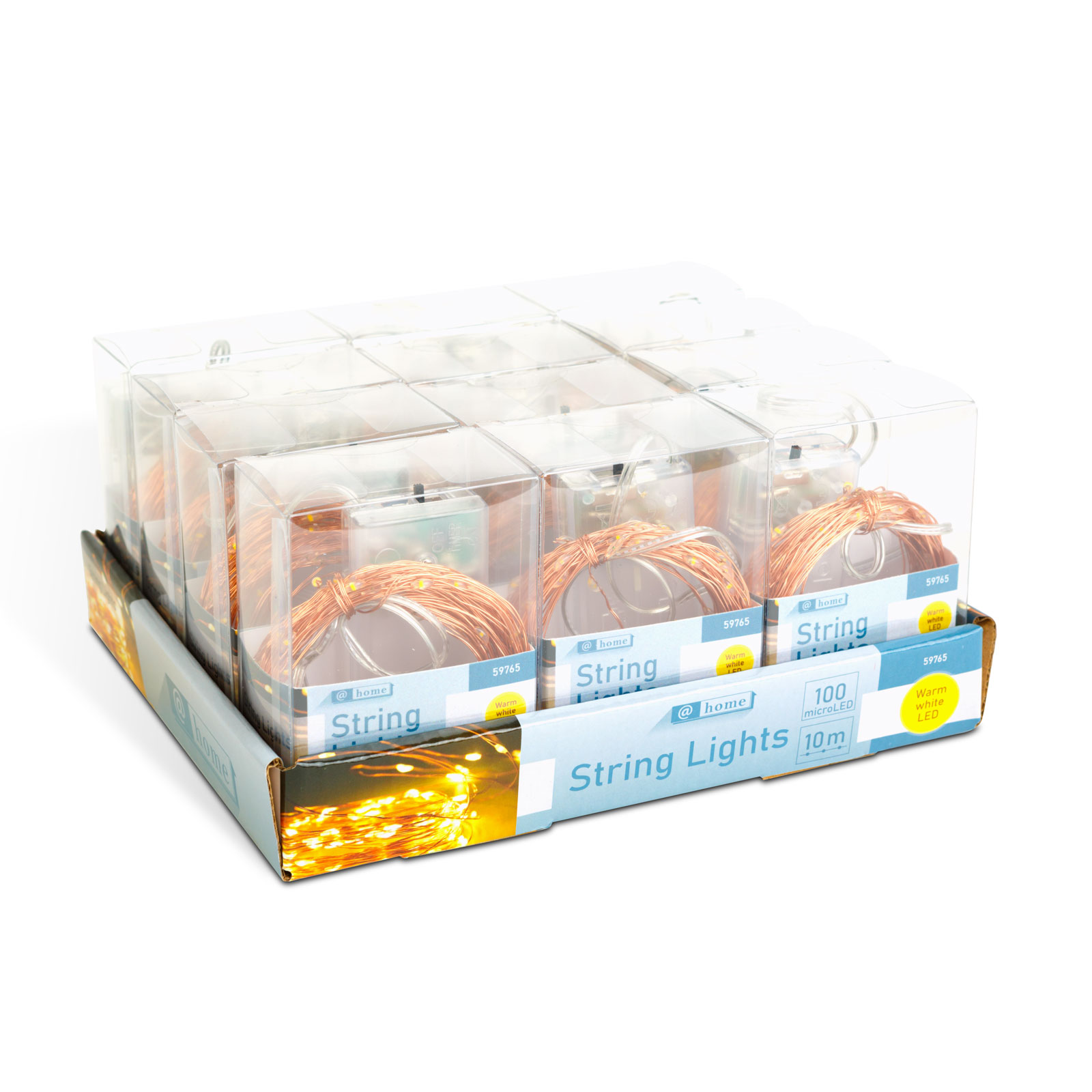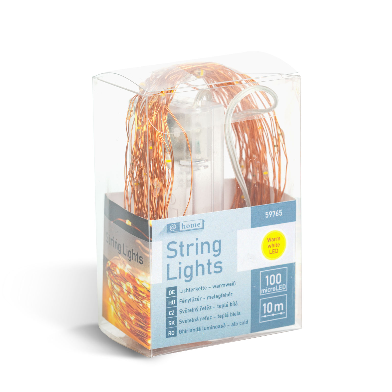 Deze 10 meter lange warmwitte microLED-lichtslinger is de perfecte keuze voor een gezellige sfeer. De 100 leds geven zacht, vriendelijk licht – ideaal voor kerstversiering, bruiloften of intieme avondverlichting. De flexibele draad is gemakkelijk te vormen, waardoor hij geschikt is voor gebruik op elk oppervlak of decoratie. Werkt op batterijen, dus geen netstroom nodig.