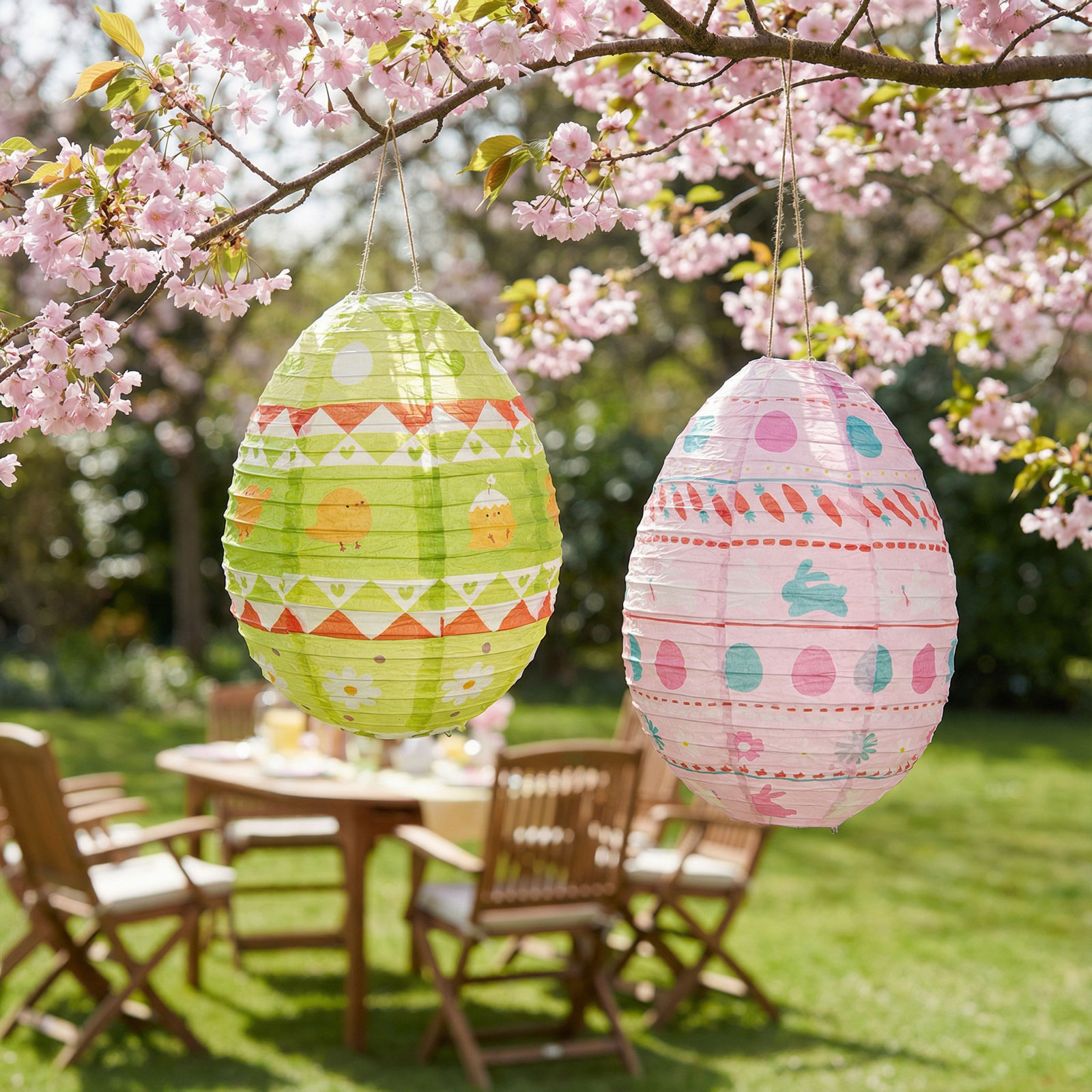 Fleur je huis op met deze charmante eivormige paaslantaarn! Versierd met vrolijke lentemotieven (konijntjes, kuikentjes, bloemen, eieren), is deze kleurrijke papieren lantaarn een uitstekende keuze voor paasdecoratie, geschikt voor binnen of op een overdekt terras. Lichtgewicht, praktisch en eenvoudig in elkaar te zetten, perfect voor lentefeestjes, feestelijke tafels of raamdecoratie. Verkrijgbaar in twee kleuren: groen en roze.