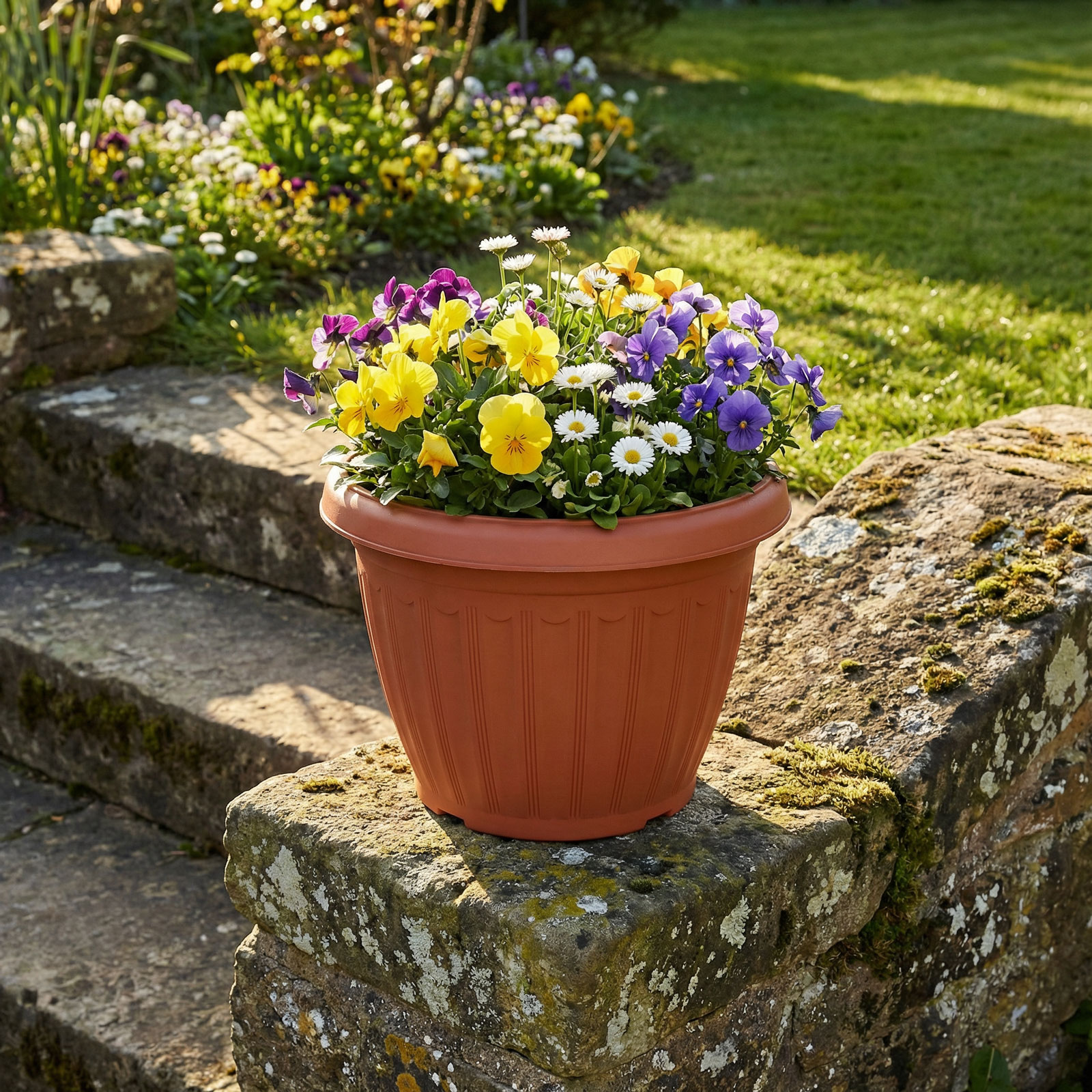 Materiaal: Plastic Kleur: Terracotta Maat: Ø20 cm Schotel: Nee Gewicht: ~156 g Aantal: 1 stuks