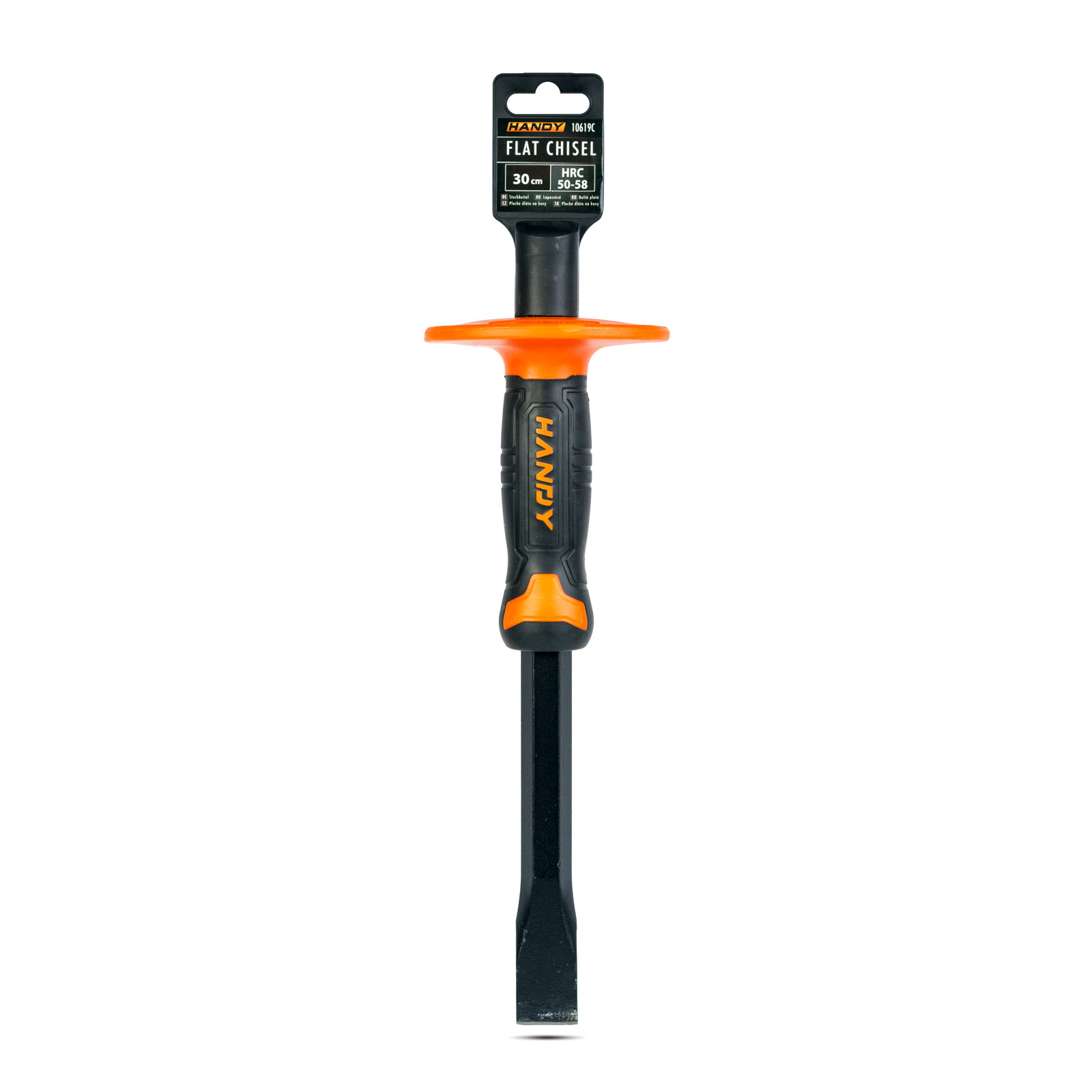 Deze platte beitel wordt gebruikt voor metaalbewerking. Dankzij de hoogwaardige staallegering is het een sterk en duurzaam gereedschap dat kan worden gebruikt voor het knippen van draden, ronde staven en het ontbramen van gesneden metalen. Ergonomische, met rubber beklede handgreep en handbescherming ter bescherming tegen stoten.