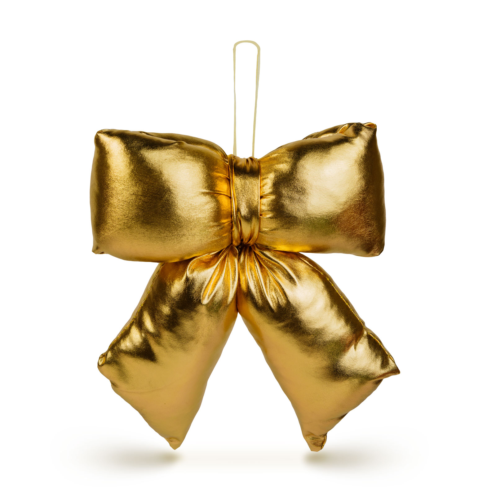 Verfraai uw feestelijke decoratie met deze spectaculaire, glinsterende strik! Een echt opvallende accessoire, perfect voor verjaardagen, naamdagen, jubilea, kerstbomen, deurversieringen of het versieren van grote cadeaus. De strik is gemaakt van zacht, stevig en pluche materiaal, waardoor hij zijn vorm en elegante uitstraling behoudt. Het glanzende oppervlak voegt een speciale glans toe en creëert een feestelijke sfeer in elke setting. Hij is eenvoudig te bevestigen met een organza lint of een stropdas, waardoor decoreren snel en moeiteloos gaat.