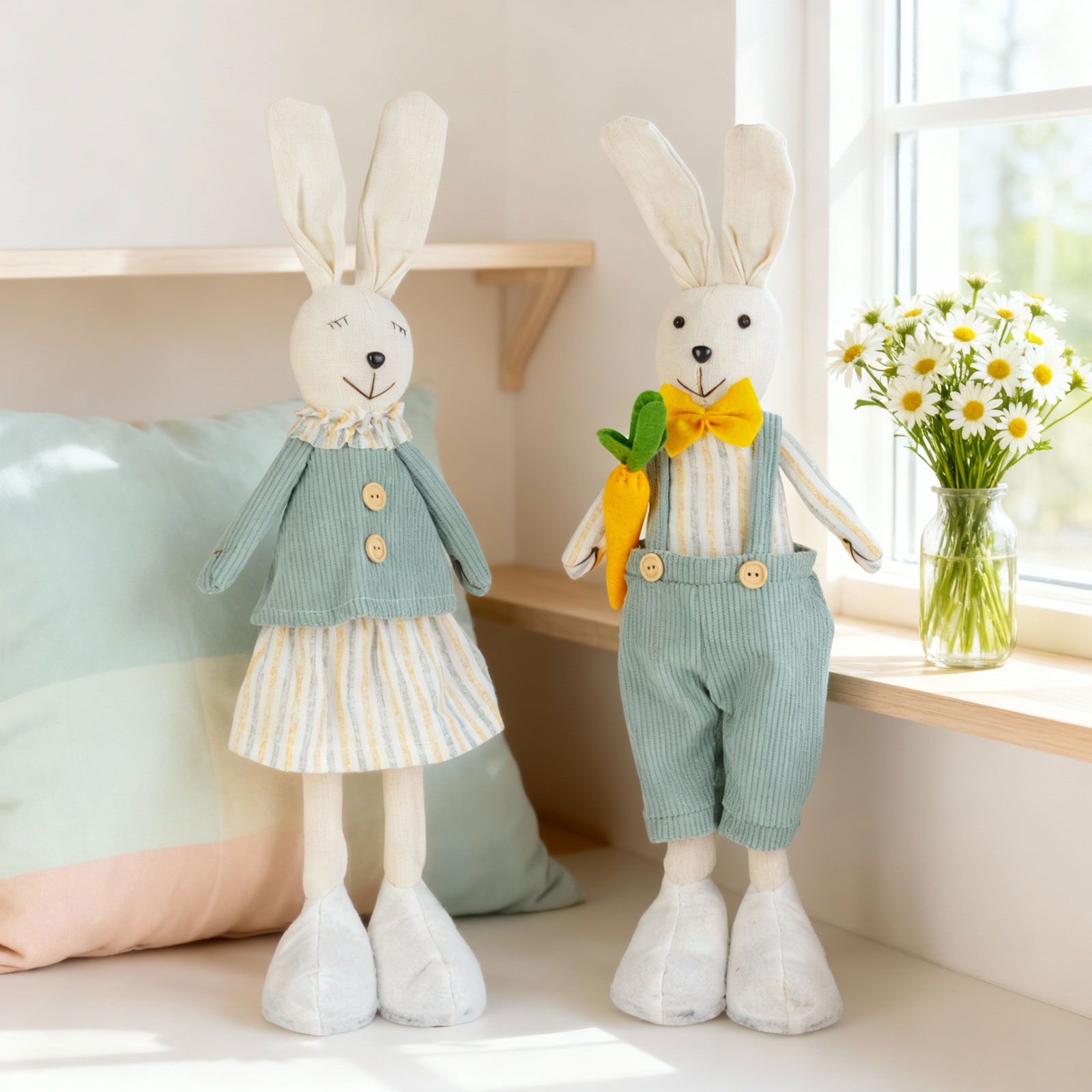 Deze charmante textiele konijndecoratie is de perfecte keuze voor Pasen en de lente, maar zorgt ook het hele jaar door voor een gezellige en vrolijke sfeer. Gemaakt van zacht textiel, maakt de schattige uitstraling het een echt bijzonder decoratief item. Het konijn is verkrijgbaar in twee varianten, zodat u de variant kunt kiezen die het beste bij u past of ze kunt combineren voor een harmonieuzer effect.