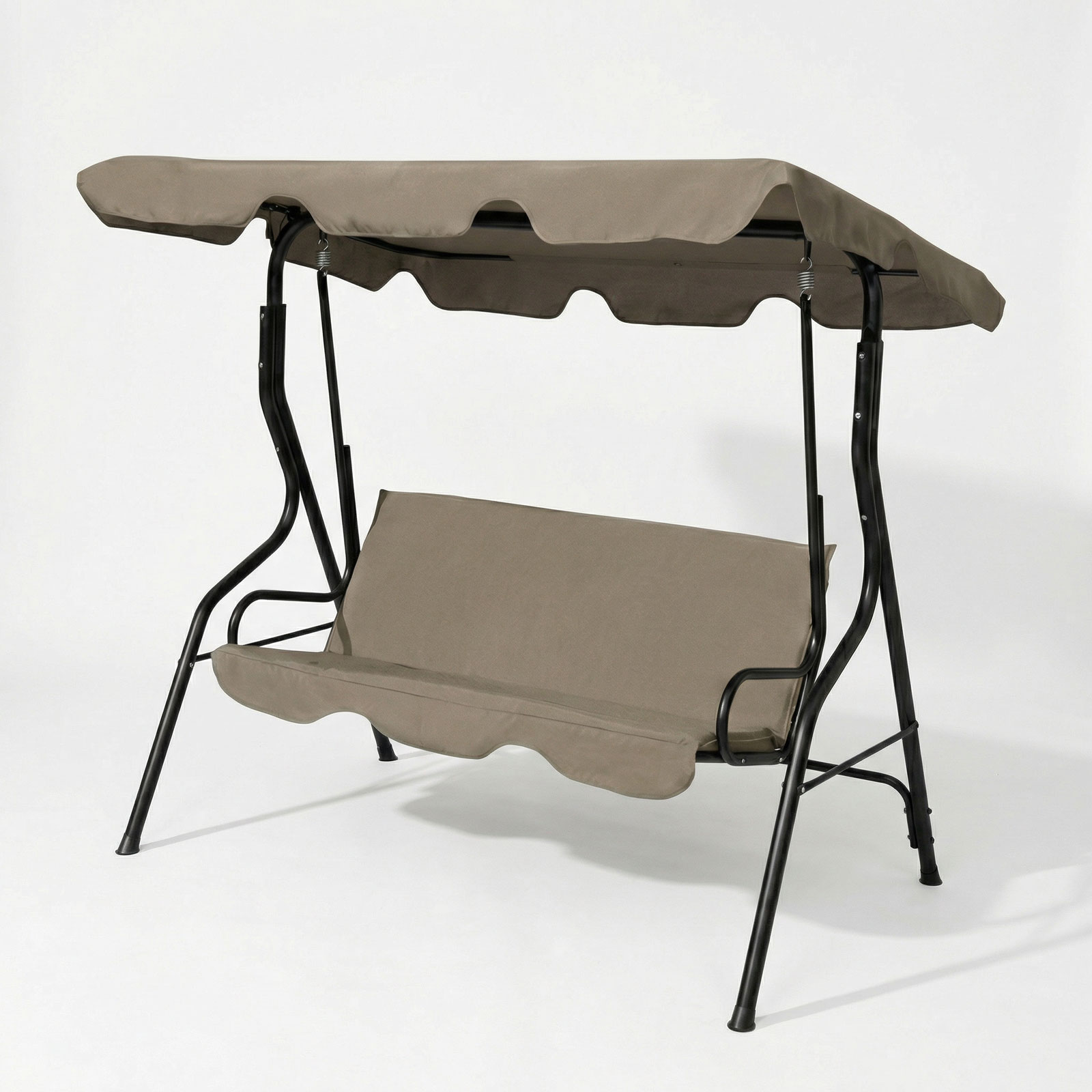 3 Persoons Schommelbank Tuin Donker Beige – Compacte Tuinschommel Metaal – Weerbestendig – 170x110x153 cm – Comfortabele Tuinbank Schommel Voor Balkon En Terras [11492A]