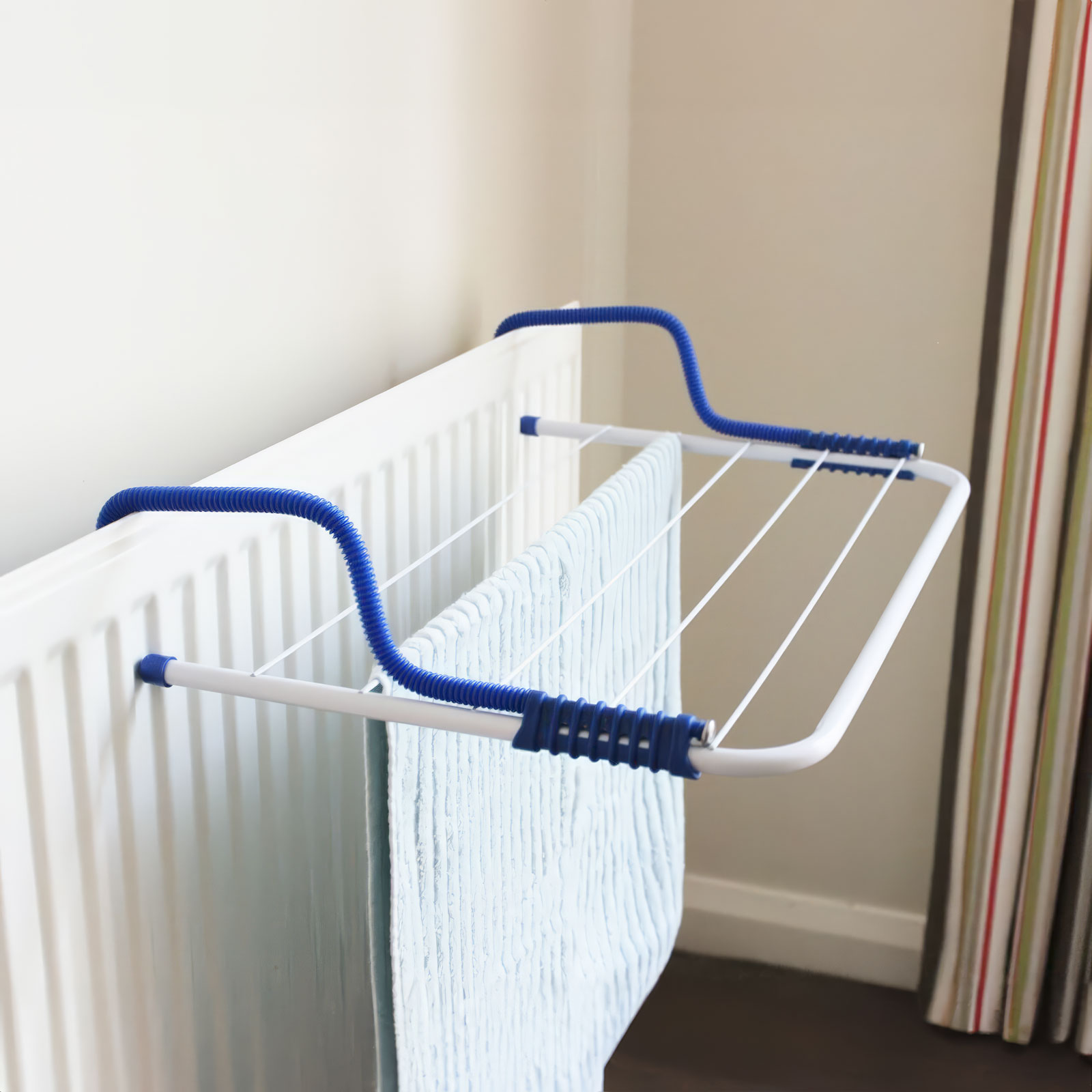 Een praktisch, compact apparaat waarmee u uw handdoeken en kleine kledingstukken ruimtebesparend kunt ordenen en drogen. Dankzij het verstelbare, flexibele bevestigingssysteem kunt u het stabiel aan elke radiator hangen.