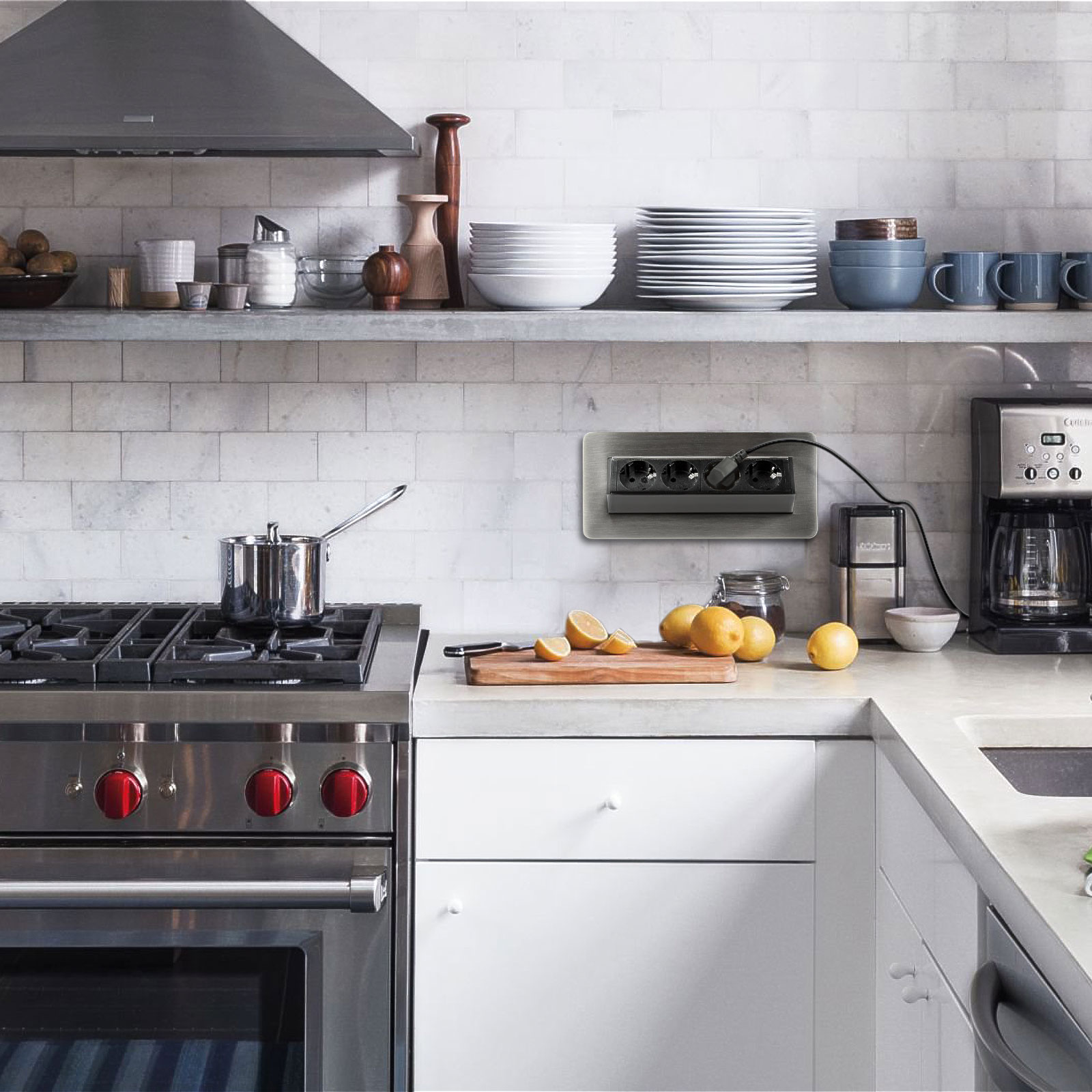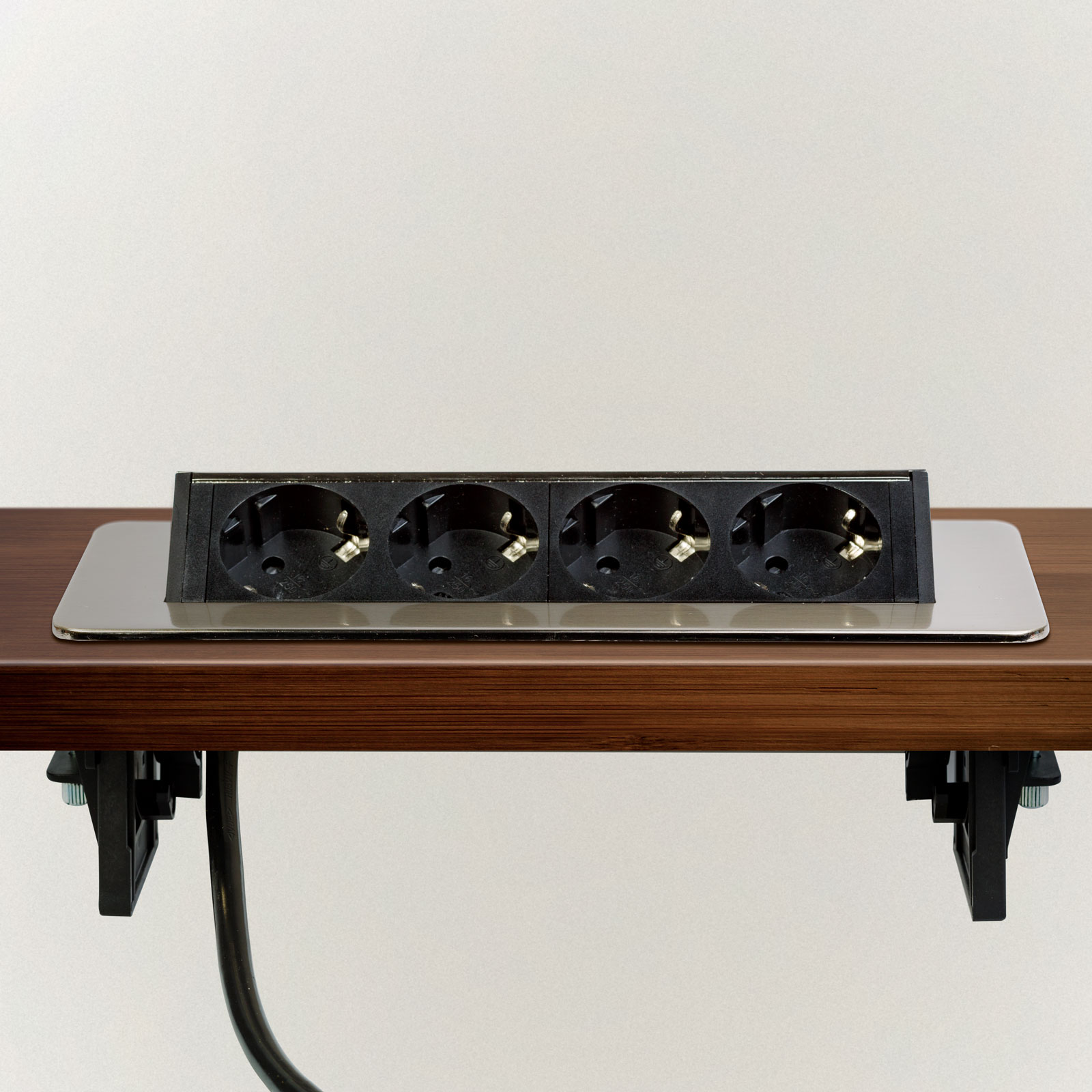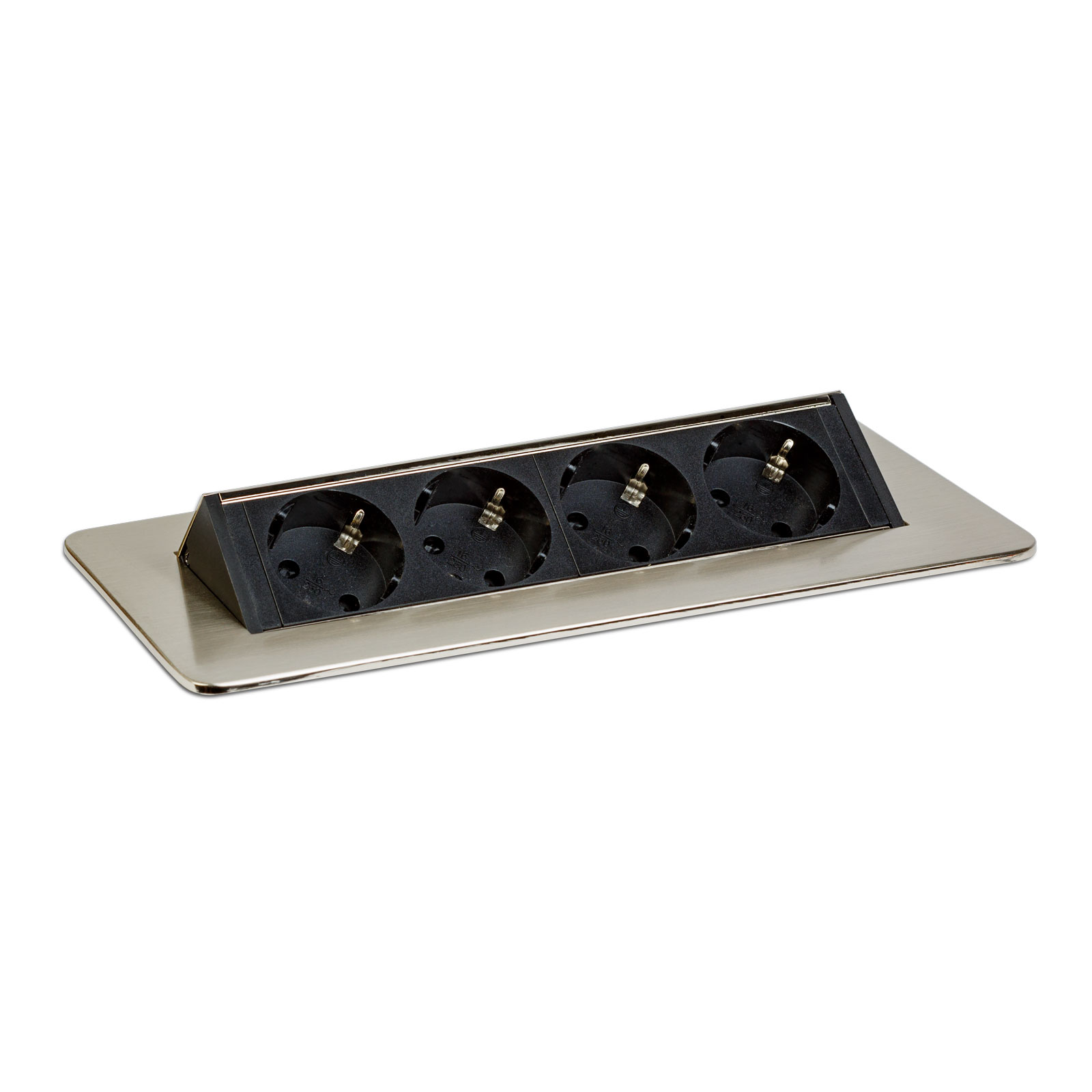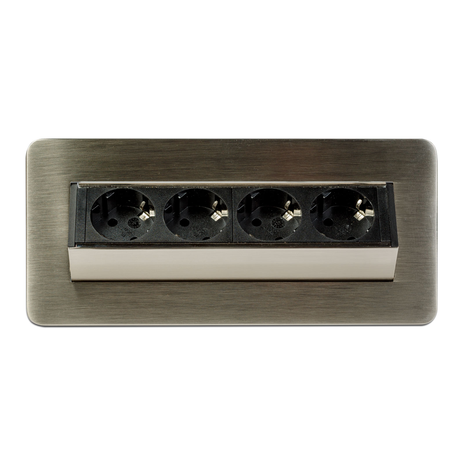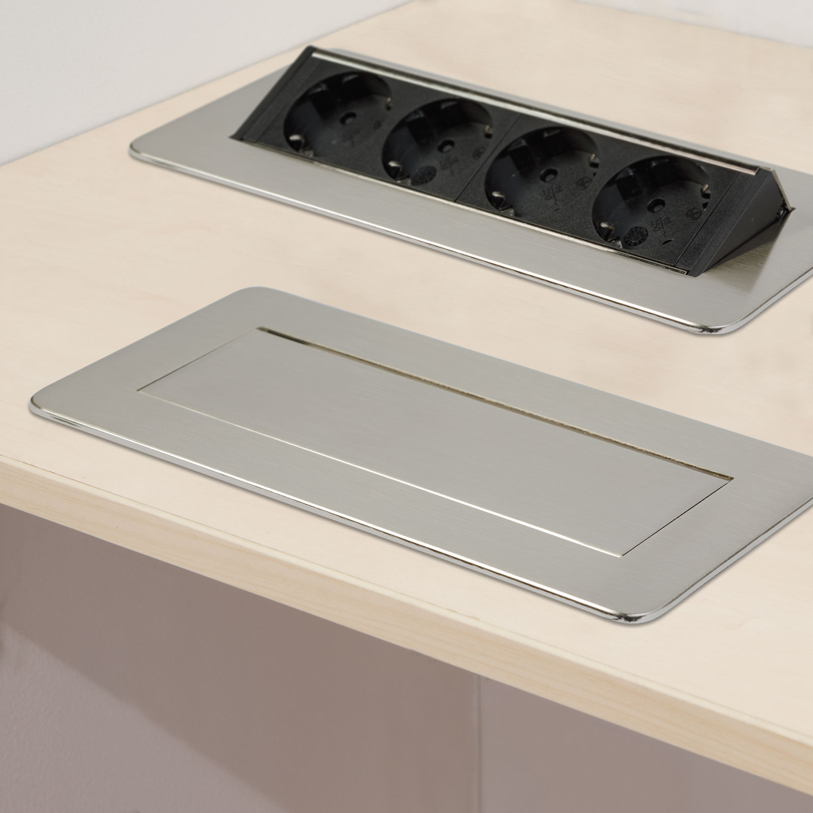Inbouwstopcontact voor kantoor en thuis, met een geborstelde afwerking en 4 kindveilige stopcontacten. Houd uw bureau en meubels elegant en netjes, maar toch functioneel. Een verborgen stopcontact kan een geweldige oplossing zijn als uw keuken bijvoorbeeld al compleet is, maar er niet genoeg stopcontacten zijn waar nodig. In dergelijke gevallen kan een verborgen stopcontact een uitstekend alternatief zijn zonder dat u gaten in de muur moet boren of het elektriciteitsnet moet uitbreiden. Met één beweging komen er 4 stopcontacten vrij. Ideaal voor elektrische apparaten die u niet continu gebruikt, zoals broodroosters of waterkokers. Wanneer u het stopcontact niet gebruikt, kan het met één beweging worden verborgen, waardoor het schoonmaken eenvoudiger wordt en de ruimte netjes en minimalistisch blijft.