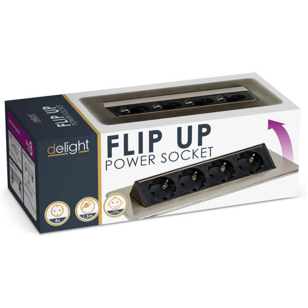 Afbeelding van Verborgen stekkerdoos – 4 stopcontacten – Pop-up design – geborstelde afwerking 1 Stuks [20446B] - 01