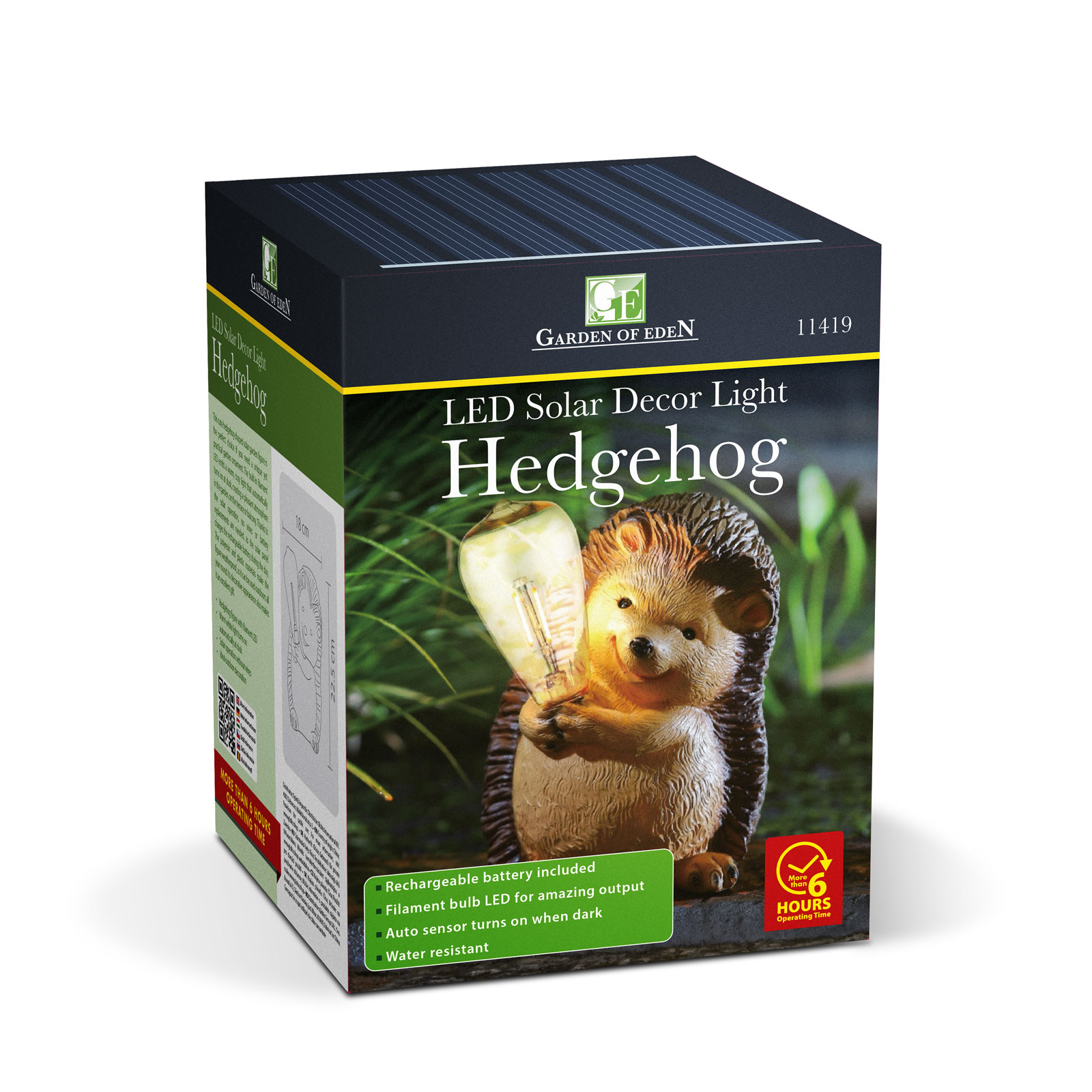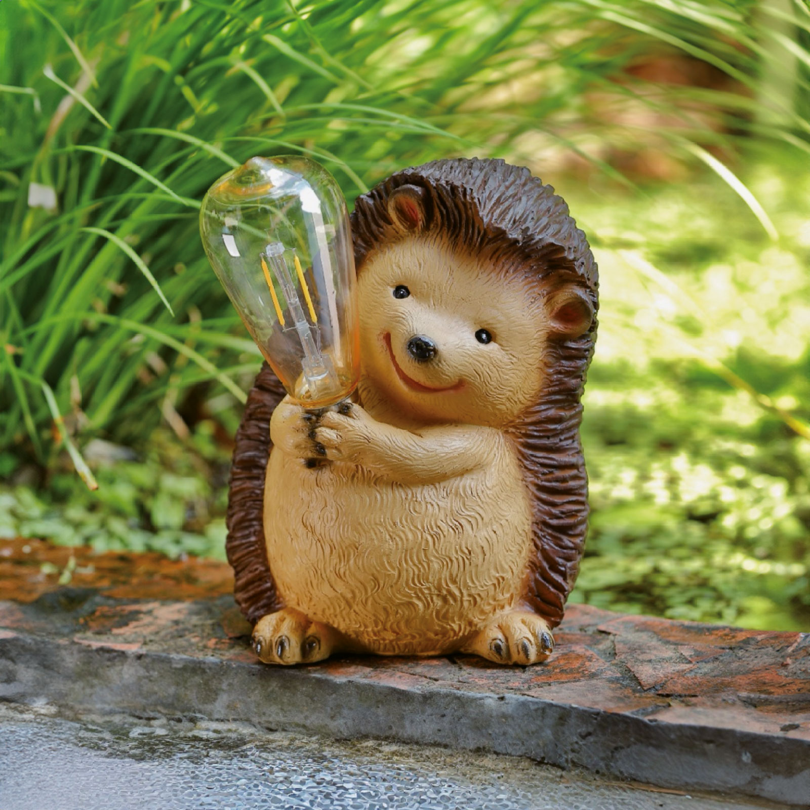 Deze schattige egelvormige tuinfiguur op zonne-energie is de perfecte keuze als u op zoek bent naar een uniek én praktisch tuinornament. De ingebouwde LED-lamp geeft een warm, gezellig licht dat automatisch aangaat bij schemering, waardoor een aangename sfeer in de tuin, op het terras of balkon ontstaat. Dankzij de werking op zonne-energie zijn er geen snoeren of batterijen nodig, want het zonnepaneel laadt de oplaadbare batterij overdag op. De figuur is gemaakt van polyhars en kunststof, waardoor hij weerbestendig is en het hele jaar door buiten gebruikt kan worden. Door zijn decoratieve uitstraling is het ook een uitstekend cadeau.
