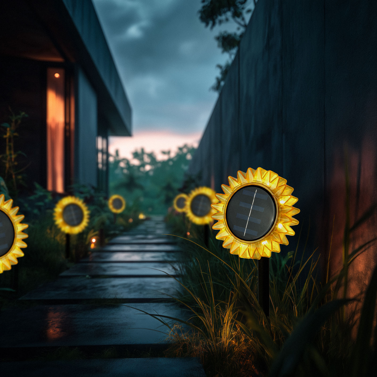 Deze decoratieve zonnebloemlamp op zonne-energie fleurt uw tuin of terras op. Dankzij het veelzijdige bevestigingssysteem kan de lamp op een grondpen worden geplaatst of opgehangen, waardoor hij gemakkelijk in elke buitenomgeving past. Het ingebouwde zonnepaneel vangt overdag efficiënt zonlicht op, dat ’s avonds de warmwitte ledlamp van stroom voorziet. De lamp schakelt automatisch in na zonsondergang, waardoor hij niet alleen mooi, maar ook een praktische oplossing is voor tuindecoratie.