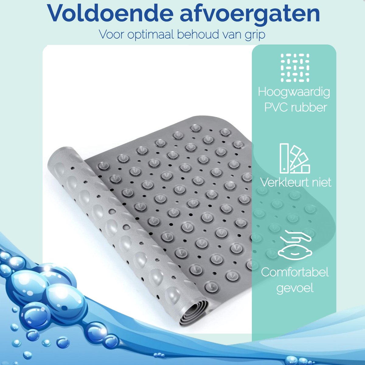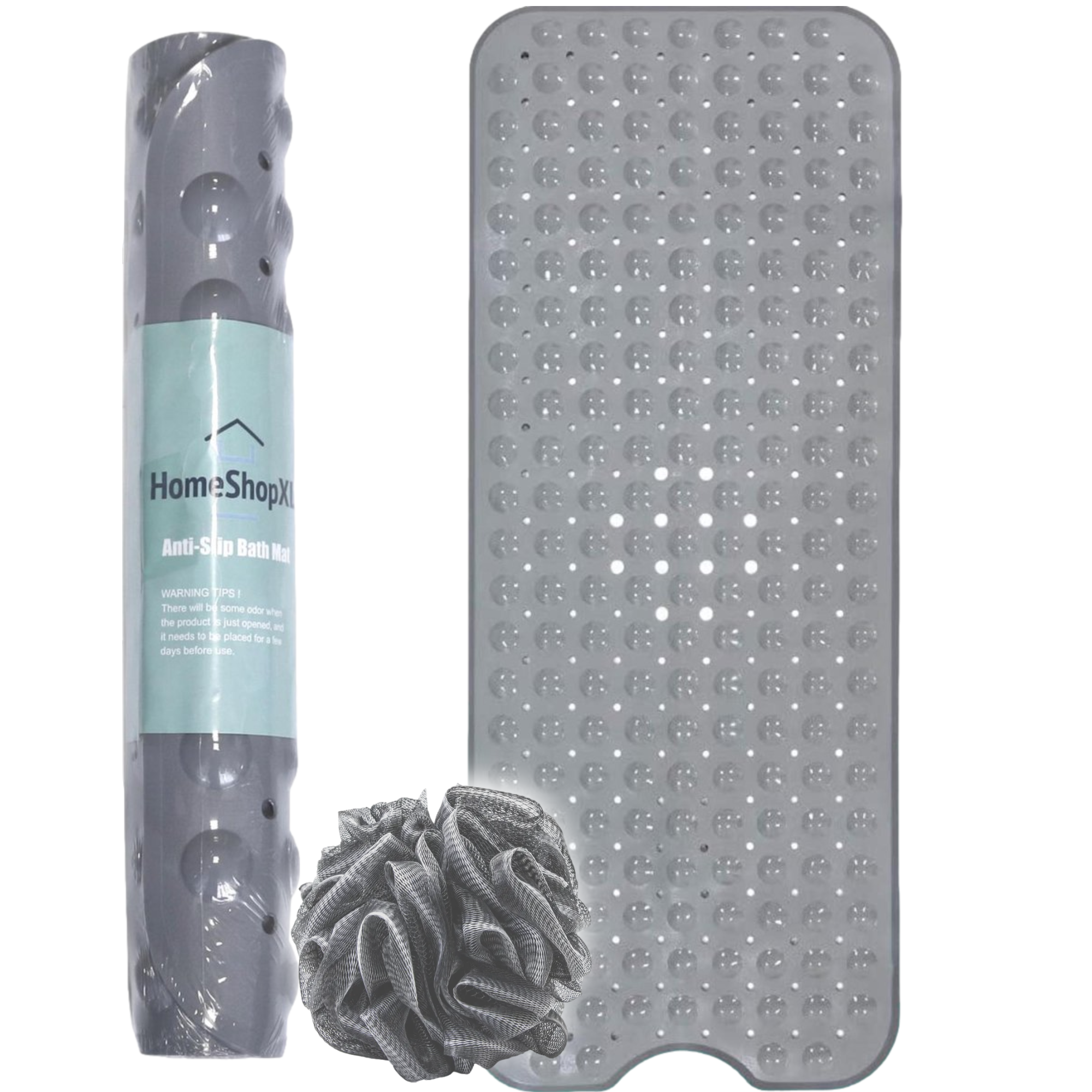 Afbeelding van HSXL - Antislipmat - 100x40CM - Incl. Netspons - Antislip Douchemat / Badmat Grijs met Zuignappen – Mat
