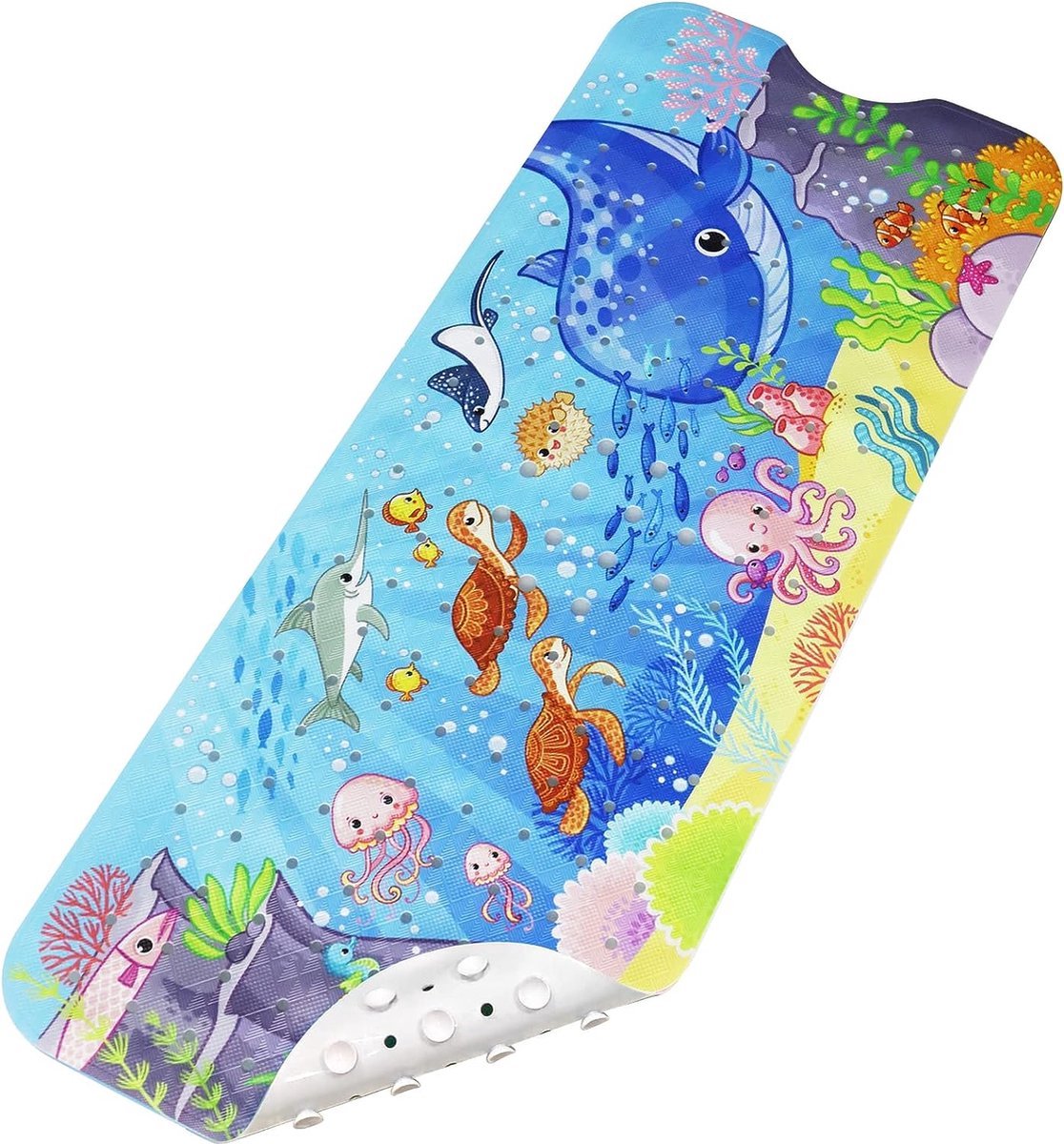 Dankzij de sterke zuignappen aan de onderkant van de mat, blijft hij stevig op zijn plek liggen.