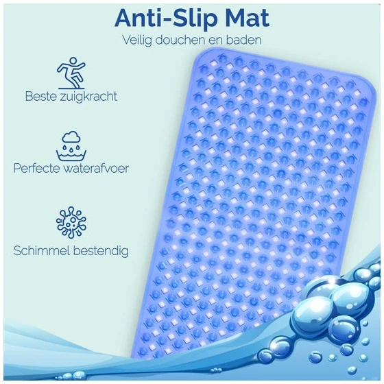 Afbeelding van HSXL - Antislipmat - 88x40CM - Incl. Netspons -Antislip Douchemat / Badmat Blauw met Zuignappen – Mat voor