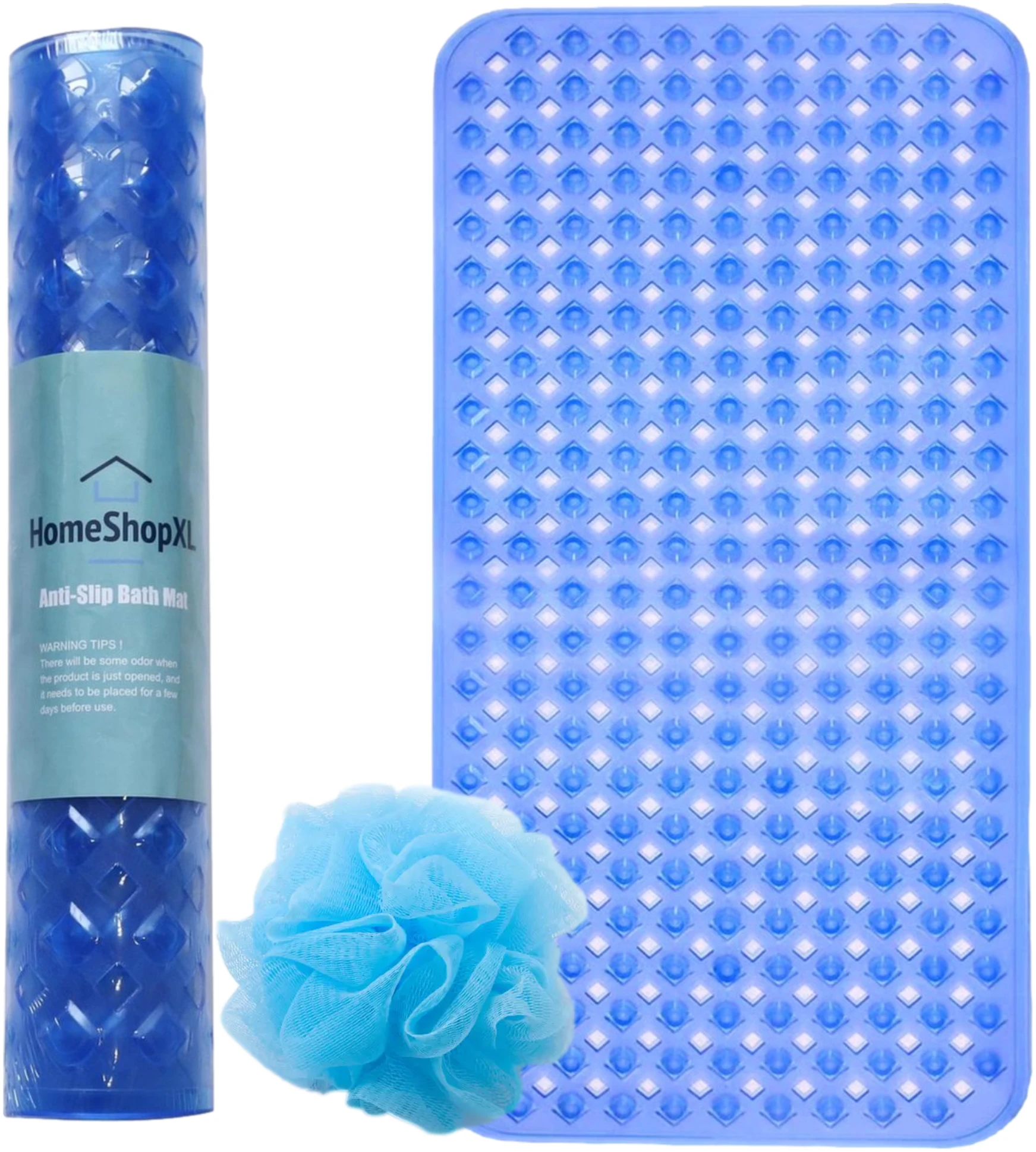 HSXL – Antislipmat – 88x40CM – Incl. Netspons -Antislip Douchemat / Badmat Blauw met Zuignappen – Mat voor in bad – Anti Slip Douche Cabine Mat – Mat voor in de Badkamer – Badkamer accessoires