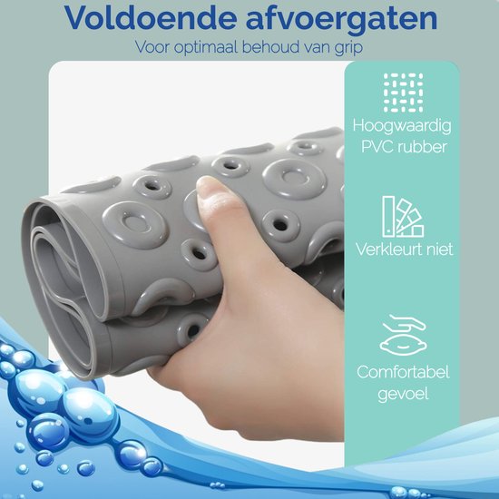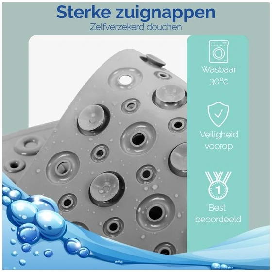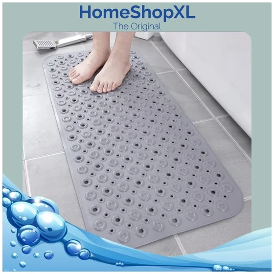 Op zoek naar een badmat die écht blijft liggen? ‘HomeShopXL – The Original’ bad en douchematten zijn de perfecte keuze! Met sterke zuignappen tegen verschuiving is deze antislipmat geschikt voor je badkuip, douchecabine, inloopdouche of tegelvloer. Gemaakt van hoogwaardig materiaal en schimmelbestendig, met een uniek design. En wist je dat je ook nog eens een bad-/douchespons cadeau krijgt? Wacht niet langer en geniet van veiligheid en comfort in je badkamer!