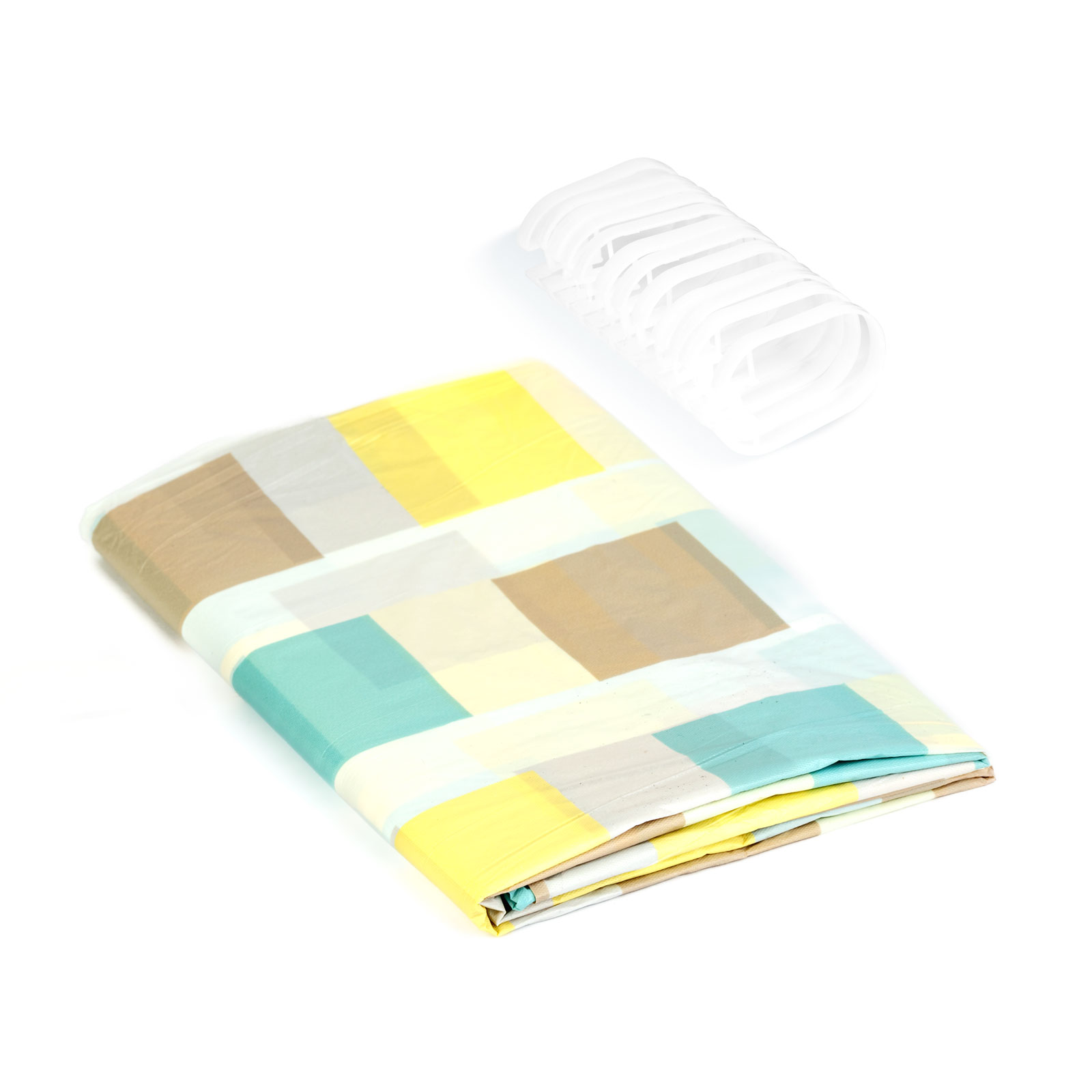 Douchegordijn 180×180 cm – waterdicht PEVA gordijn met 12 ringen, willekeurig design (blauw/lente/ruit) [11526B]