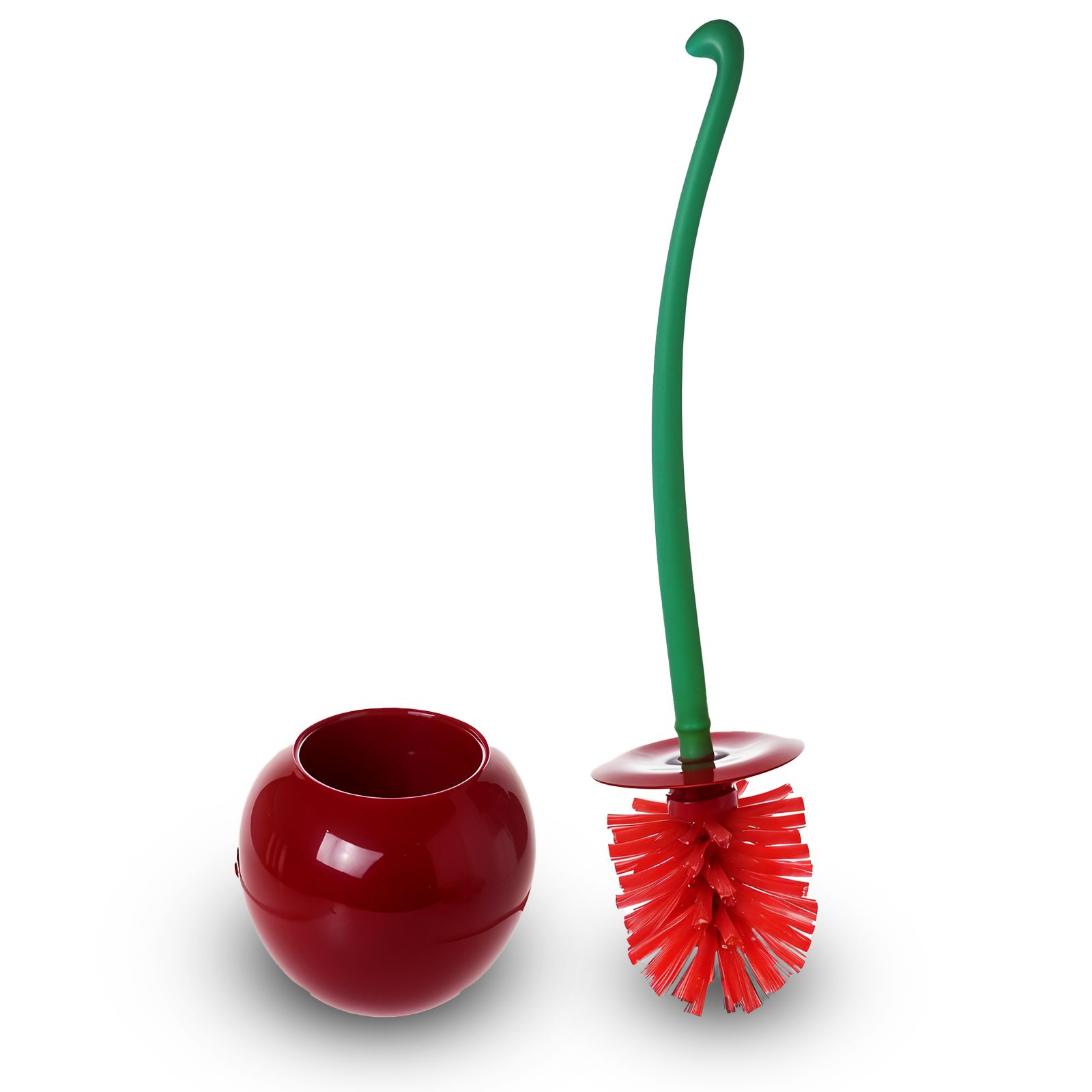 Kunststof toiletborstelhouder in kersenvorm met borstel. Gemakkelijk schoon te maken en te desinfecteren.