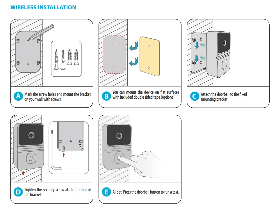 Inhoud verpakking: Slimme intercom, beugel, binnenunit, oplaadkabel