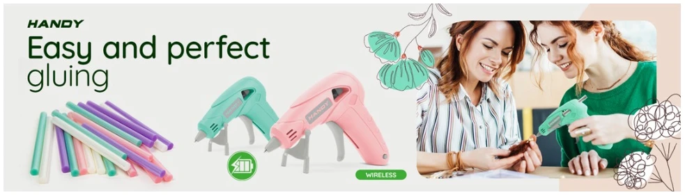 Dit draadloze lijmpistool is geschikt voor kleine lijmklussen en doe-het-zelf werkzaamheden. De ingebouwde batterij zorgt voor handig en veilig draadloos gebruik. Het ergonomische ontwerp kan nuttig zijn voor precisietaken, het kan ideaal zijn: voor fotoalbums, briefpapier, plastic of zelfgemaakte decoratieve elementen. Door de precisietip en druppelbescherming wordt lijmvloei vermeden. Door de trekker van het pistool over te halen kan de hoeveelheid lijm nauwkeurig worden gedoseerd, zodat er niet te veel lijm in één keer op het te lijmen oppervlak wordt aangebracht. De lijm stolt weer nadat het is afgekoeld.