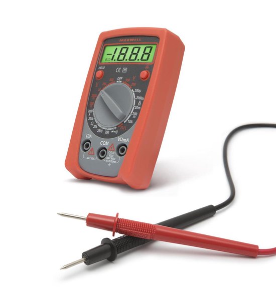 De MAXWELL Multimeter is een veelzijdig en betrouwbaar meetinstrument dat geschikt is voor zowel professionele elektriciens als doe-het-zelvers. Deze digitale multimeter is uitgerust met diverse handige functies, waaronder spanningsmeting, diodetest en weerstandsmeting. Hiermee kunt u eenvoudig en nauwkeurig verschillende elektrische parameters meten.