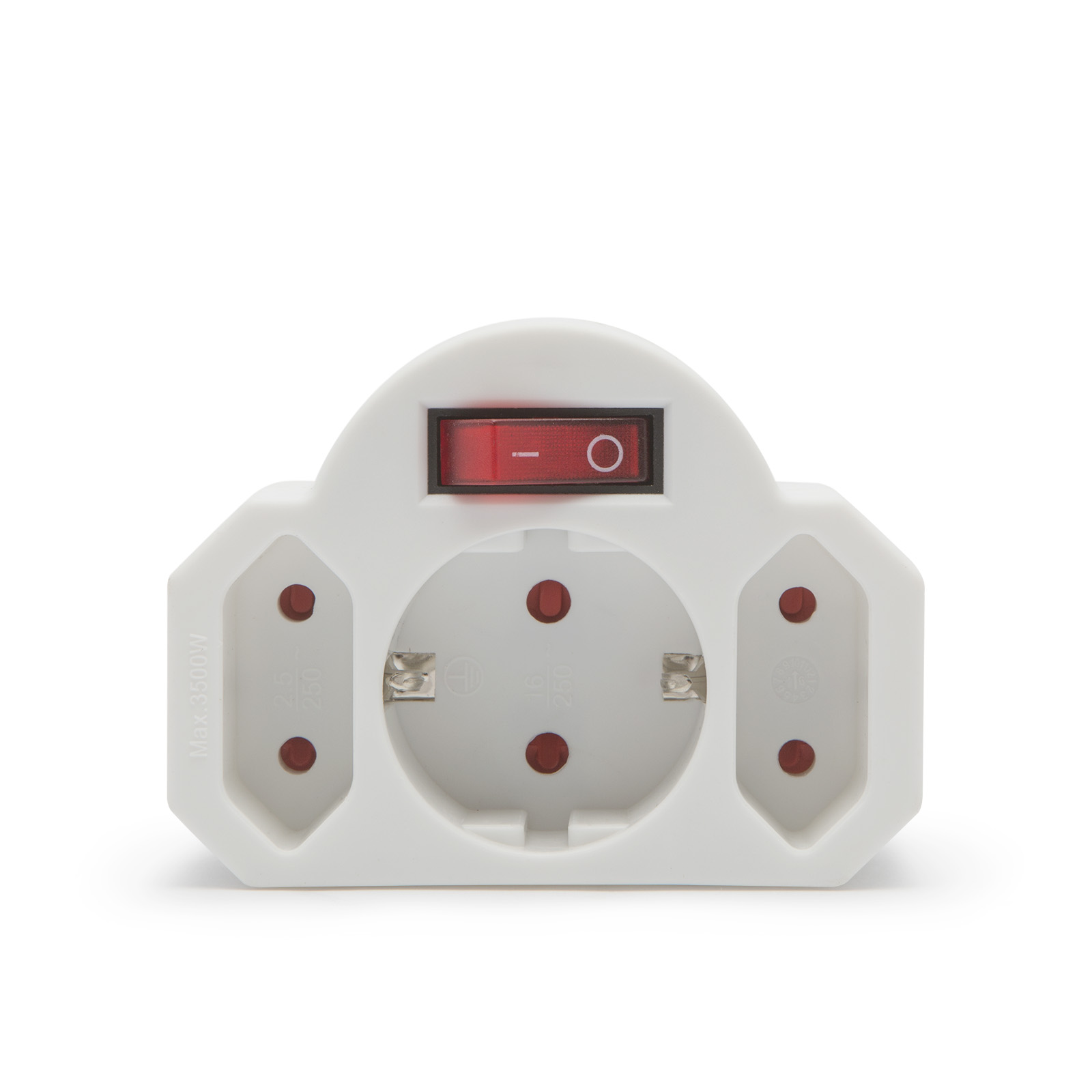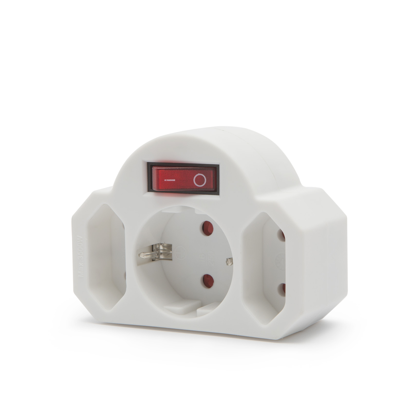 1+2 wandverdeler die 3 apparaten op uw netwerk aansluit, zodat u niet hoeft te wisselen en ze tegelijkertijd kunt gebruiken. 1 conventioneel en 2 euro-stopcontacten, ideaal voor keukengerei of het aansluiten van telefoonopladers. Heeft een ingebouwde schakelaar voor snel uitschakelen.
