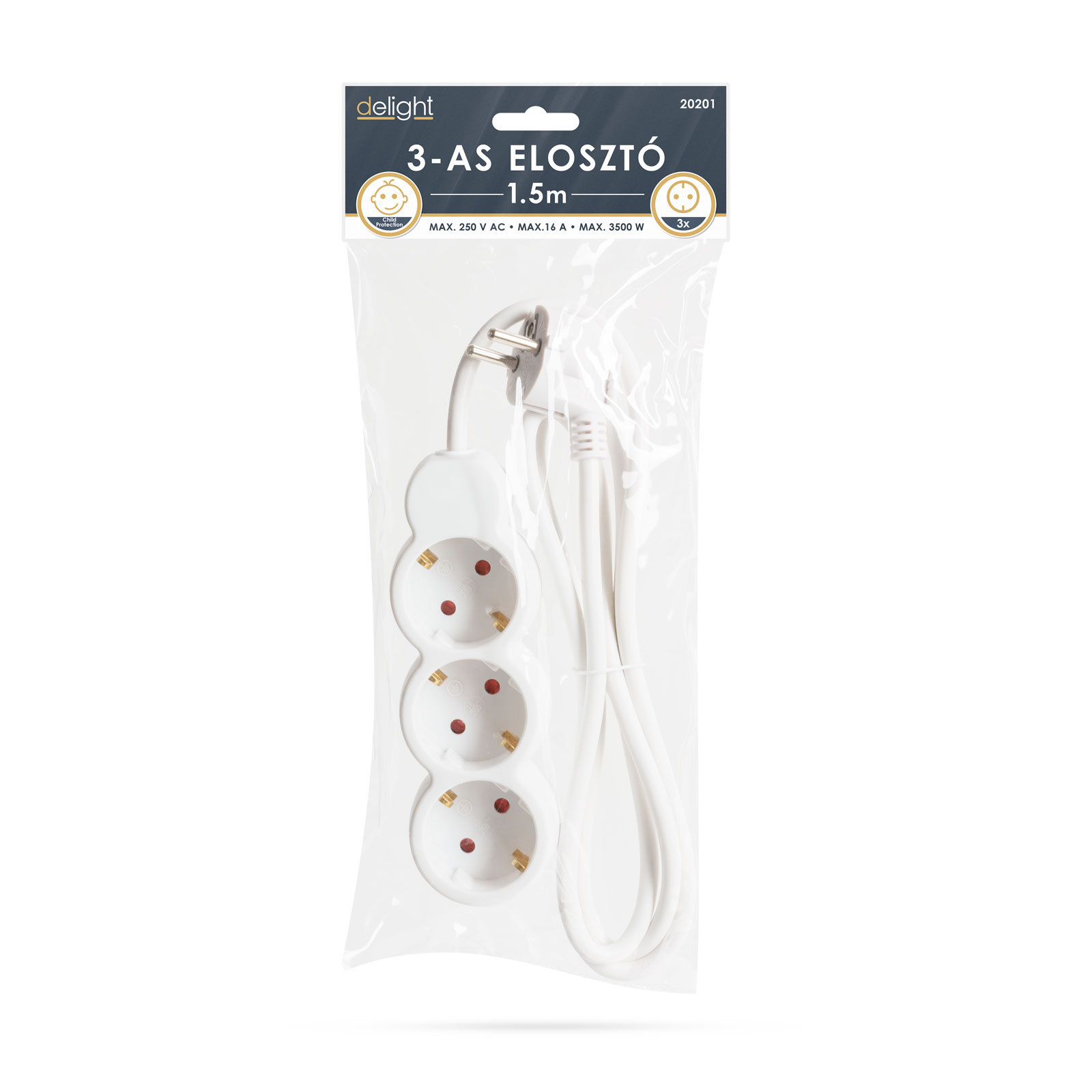 Stekkertype: CEE 7/7 stekker Sockettype: 3 CEE 7/4-stopcontacten met randaarde Max. stroom: 10 / 16 A Nominale spanning: 250 V AC, 50 Hz Kabeltype: H05VV-F 3 x 1,00 mm² Kabellengte: 1,5 meter