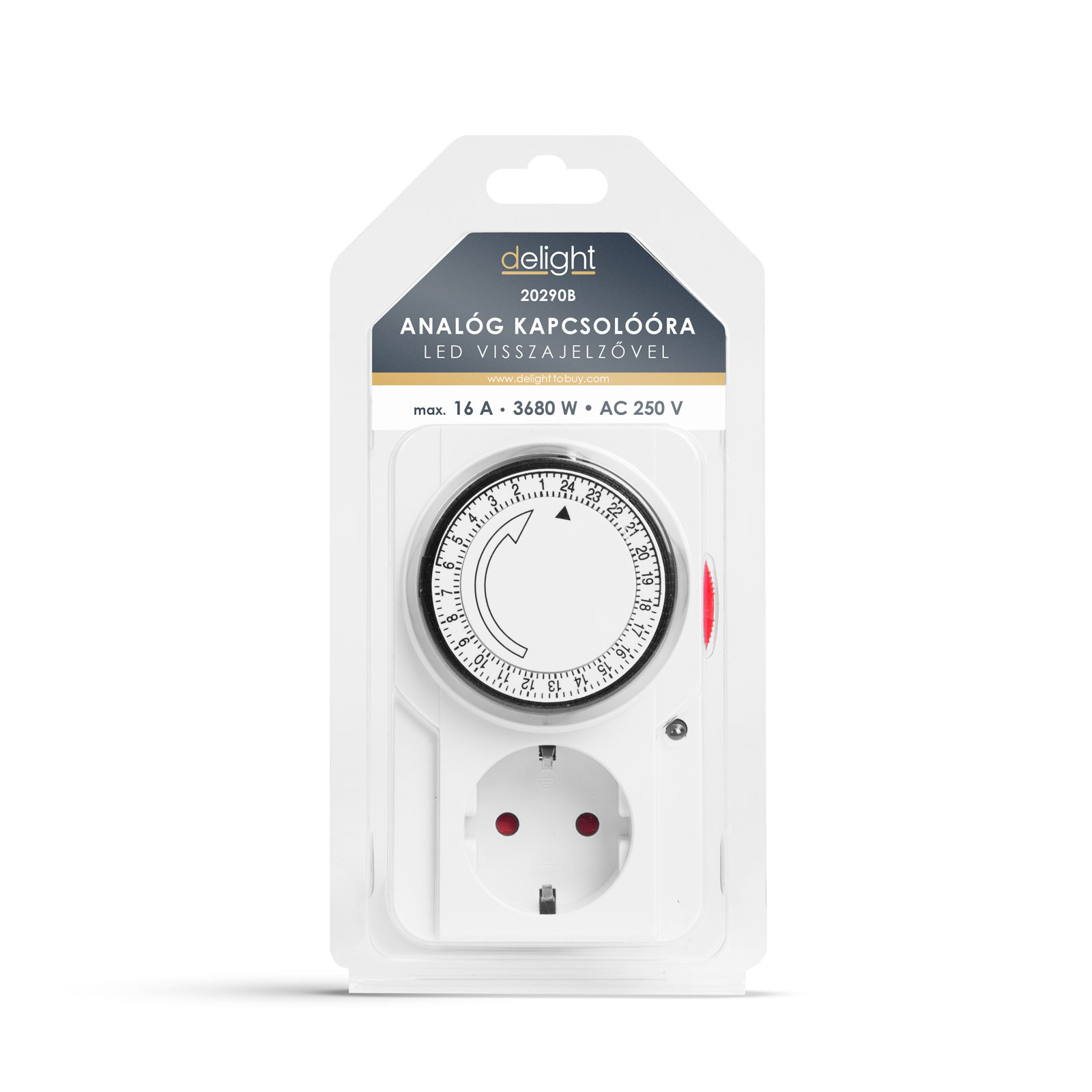 Beschermingsklasse: IP20 Bedrijfsspanning: 230V AC (50 Hz) Maximaal vermogen: 3680 W Timerfunctie: 0 – 24 uur (intervallen van 15 minuten) Ideale omgevingstemperatuur: 0 – (+55)°C Maat: 75 x 120 x 45 mm Kleur: Wit Gewicht: ~140 gram