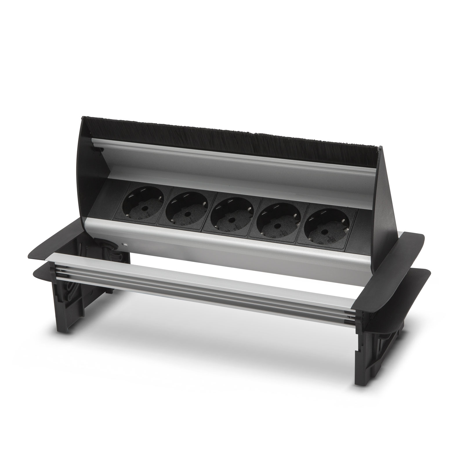 Bureaustopcontact voor kantoor en thuis, met een metalen behuizing die kan worden neergelaten en 5 kindveilige stopcontacten. Uw tafel en meubilair moeten altijd elegant en ordelijk zijn, maar toch functioneel. Een verborgen stopcontact kan een uitstekende oplossing zijn, bijvoorbeeld als u een kant-en-klare keuken heeft, maar er niet genoeg stopcontacten op de gewenste locatie zijn. In dat geval zou u de muur moeten beitelen of het elektriciteitsnet moeten uitbreiden. Een goed alternatief kan een verborgen verdeler zijn. Met één handeling heeft u al 3 vrije aansluitingen. Ideaal voor elektrische apparaten die u niet constant gebruikt, zoals een broodrooster, waterkoker… Wanneer u de verdeler niet gebruikt, kan deze met één handeling worden verborgen, waardoor hij gemakkelijker schoon te maken is en de kamer een georganiseerde, schone uitstraling geeft.