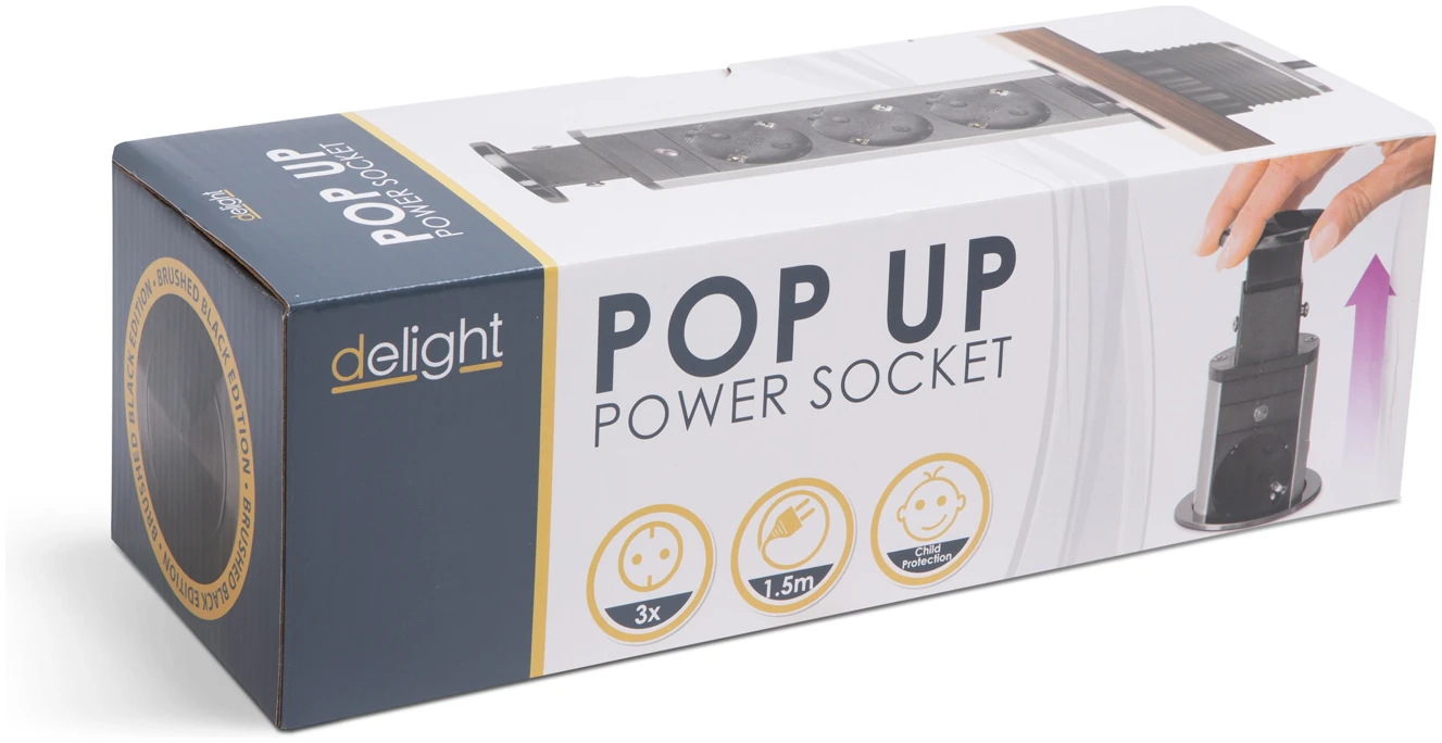DELIGHT – Inbouw Pop-Up Tafelblad Stekkerdoos met 3 Stopcontacten – Zwart