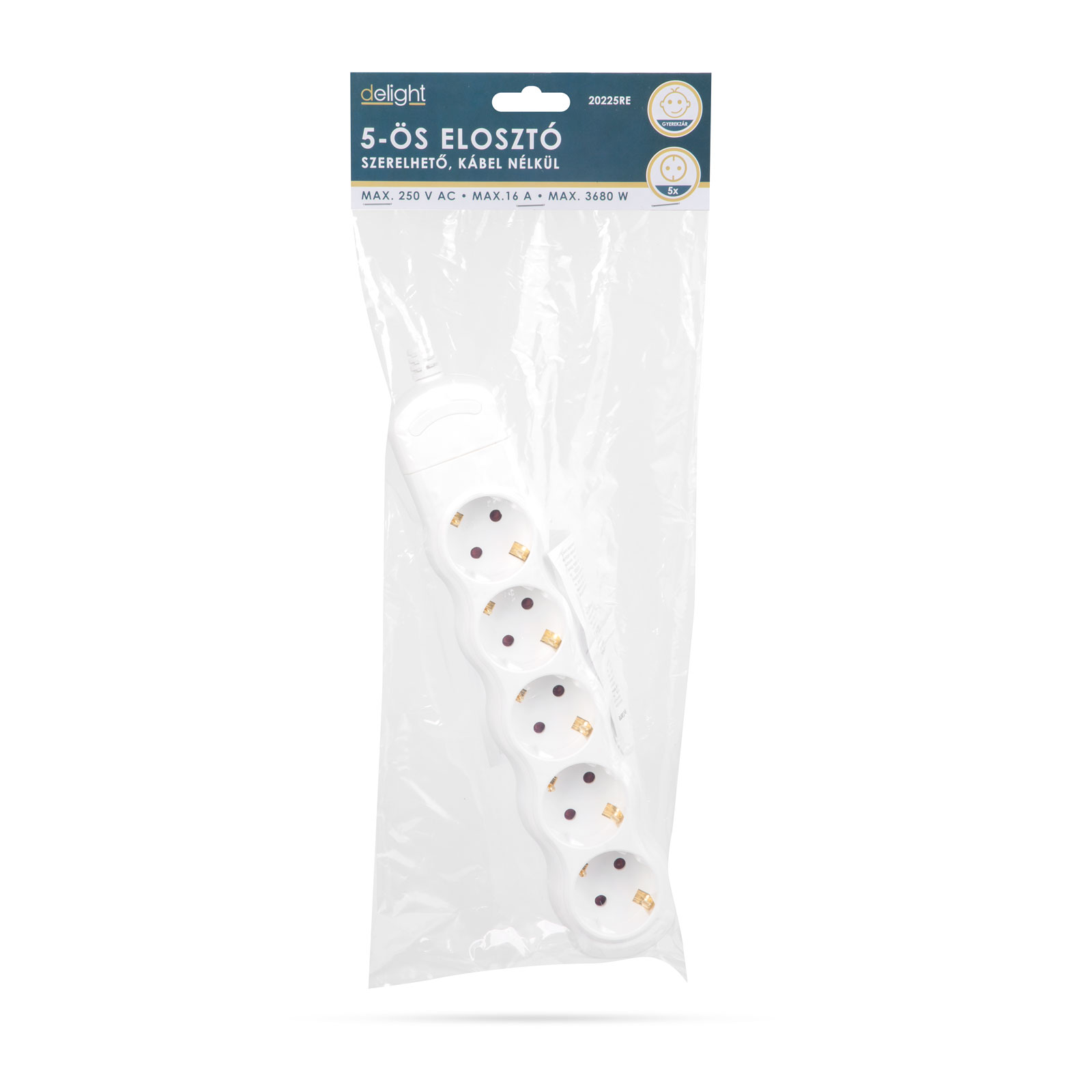 Afbeelding van Stekkerdoos 5-voudig - Zelfmontage zonder Kabel - Kinderbeveiliging - 250V • 16A - Wit [20225RE] - 7825