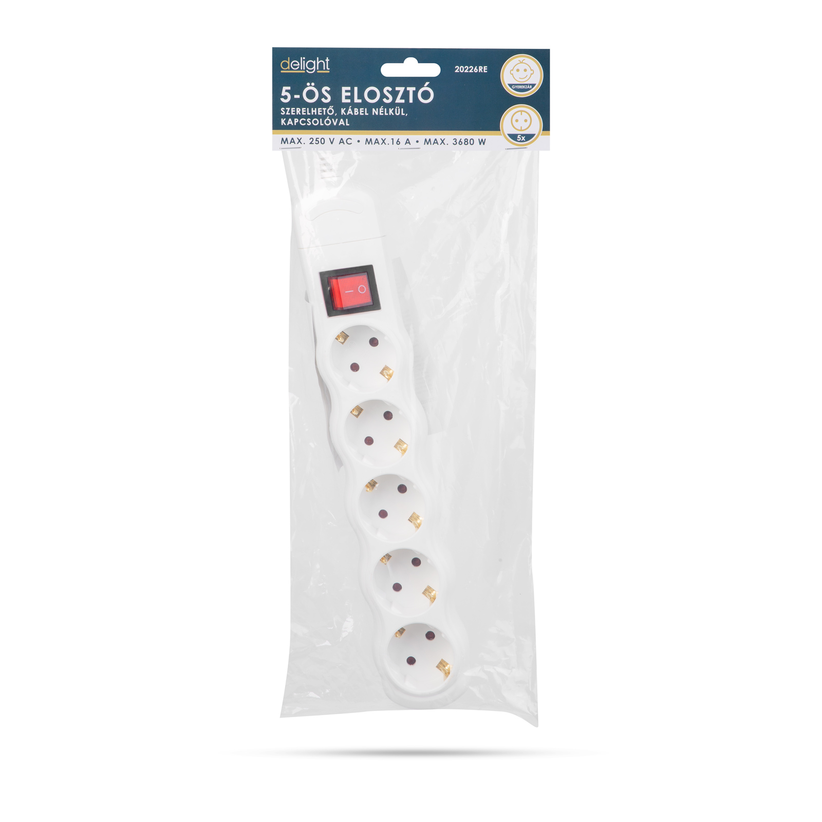 Stekkerdoos 5-voudig – Zelfmontage zonder Kabel – Met Schakelaar en Kinderbeveiliging – 250V • 16A – Wit [20226RE]