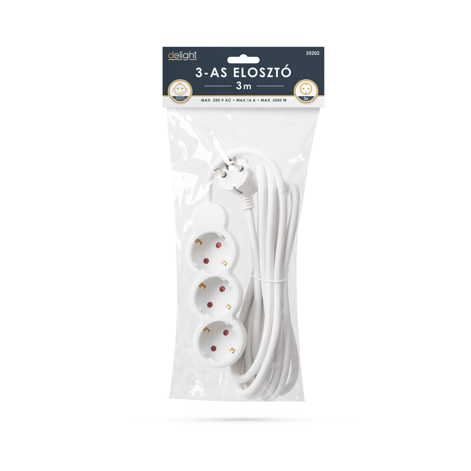 Stekkertype: CEE 7/7 stekker Sockettype: 3 CEE 7/7 stopcontacten met randaarde Max. stroom: 10 / 16 A Nominale spanning: 250 V AC, 50 Hz Kabeltype: H05VV-F 3 x 1,50 mm² Kabellengte: 3 meter - Kindveilig